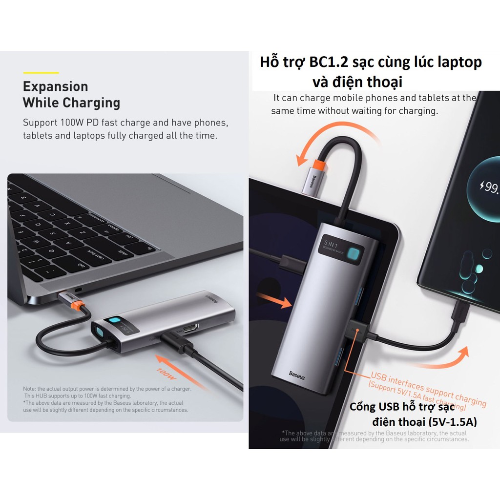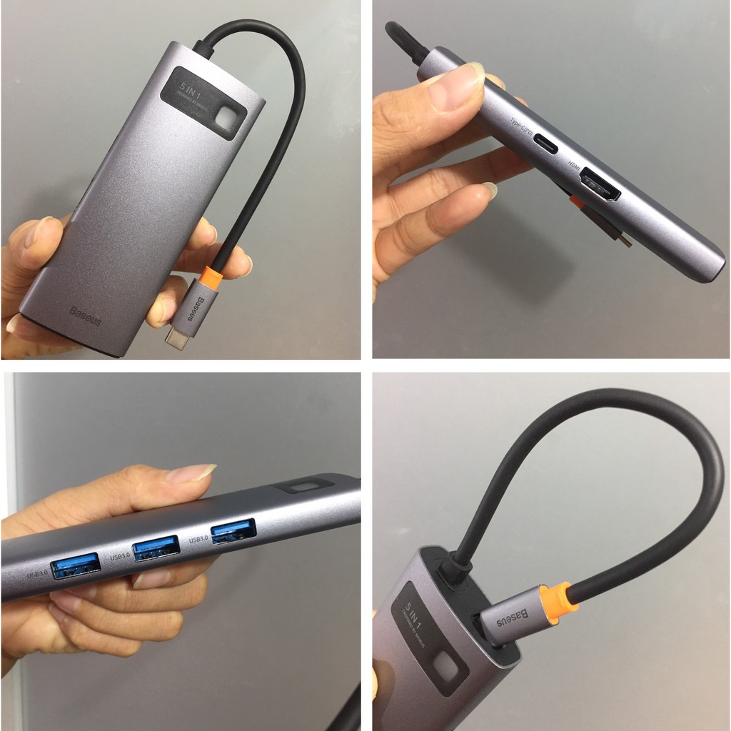 Mua tại TiktokHub/ Bộ chia Cổng Type-C đa năng 5 trong 1 thương hiệu Baseus, Series: Metal Gleam; Model: CAHUB-CX0G ( LƯU Ý CẦN PHÂN BIỆT VỚI CÁC PHIÊN BẢN 5IN1 CÓ MODEL KHÁC!!!!!! ) -Input: Type- C + Hỗ trợ OTG ( Điện thoại phải có OTG) -Output: