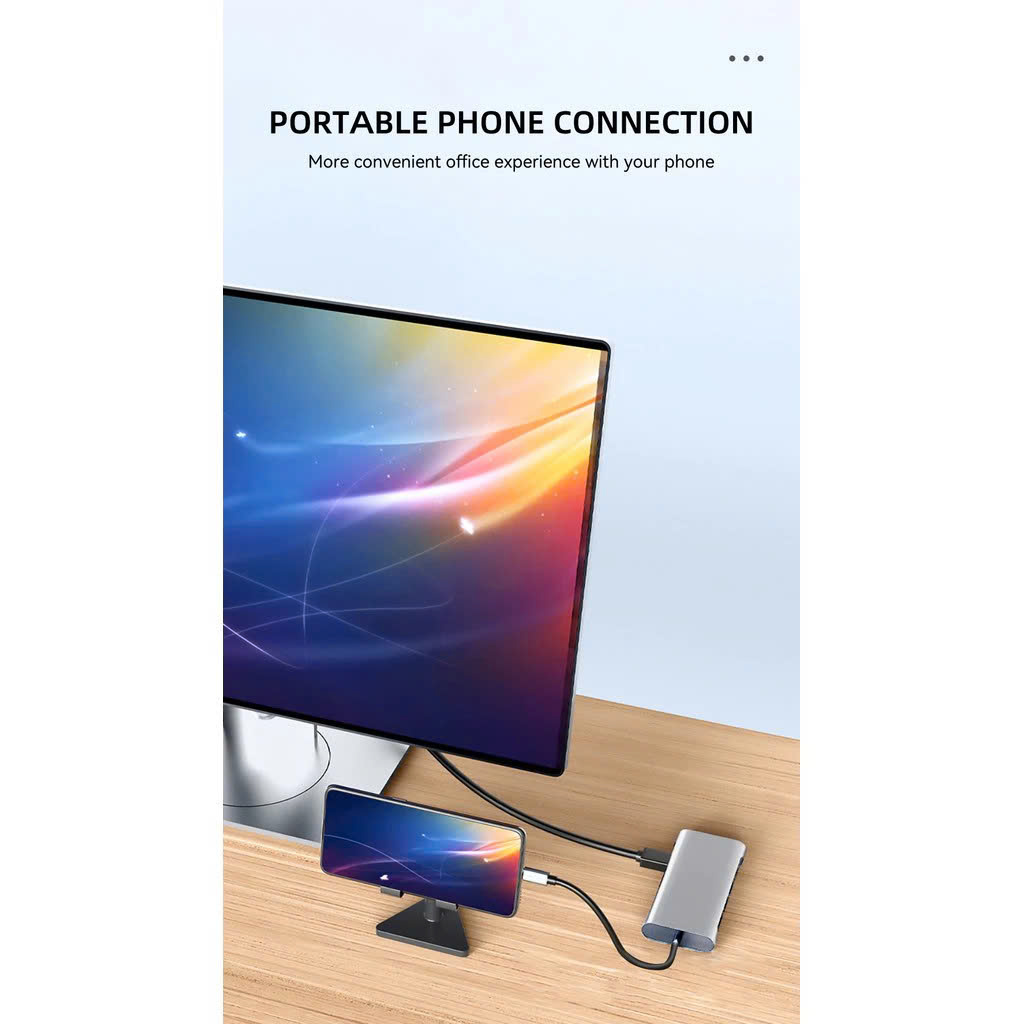 MÔ TẢ SẢN PHẨM Cổng loại C 11 trong 1: Tương thích HDMI + USB3.0 * 1 + USB2.0 * 3 + PD 87W + TF + SD + 100M RJ45 + AUX +