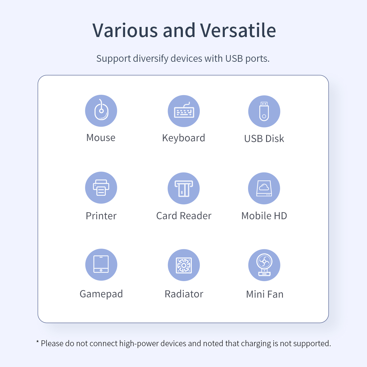 1. Add 4 USB 2.0 Hi-Speed ports; 2. Fully Compliant with USB 2.0 Specification; 3. Supports up to 127 Hi-Speed devices; 4. Backwards Compliant with USB 1.1; 5. Supports data transfer rate at 1.5/12/480 Mbps;