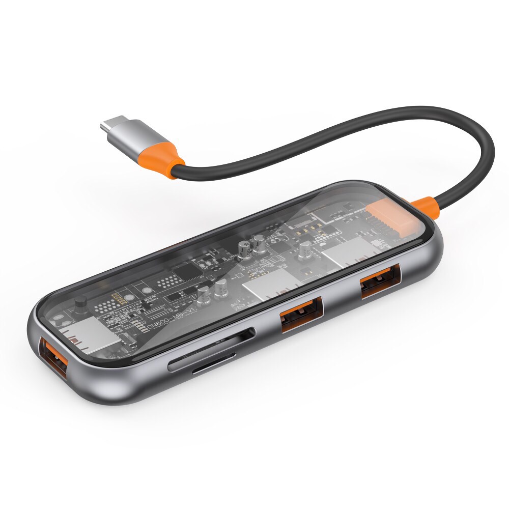 Input: Type C Output Có 4 phiên bản : - 4 in 1: HDMI, USB3.0, USB2.0, Type C (PD100W) - 5 in 1: HDMI, USB3.0*3, Type C (PD100W) - 6 in 1: HDMI, USB3.0*3, RJ-45,