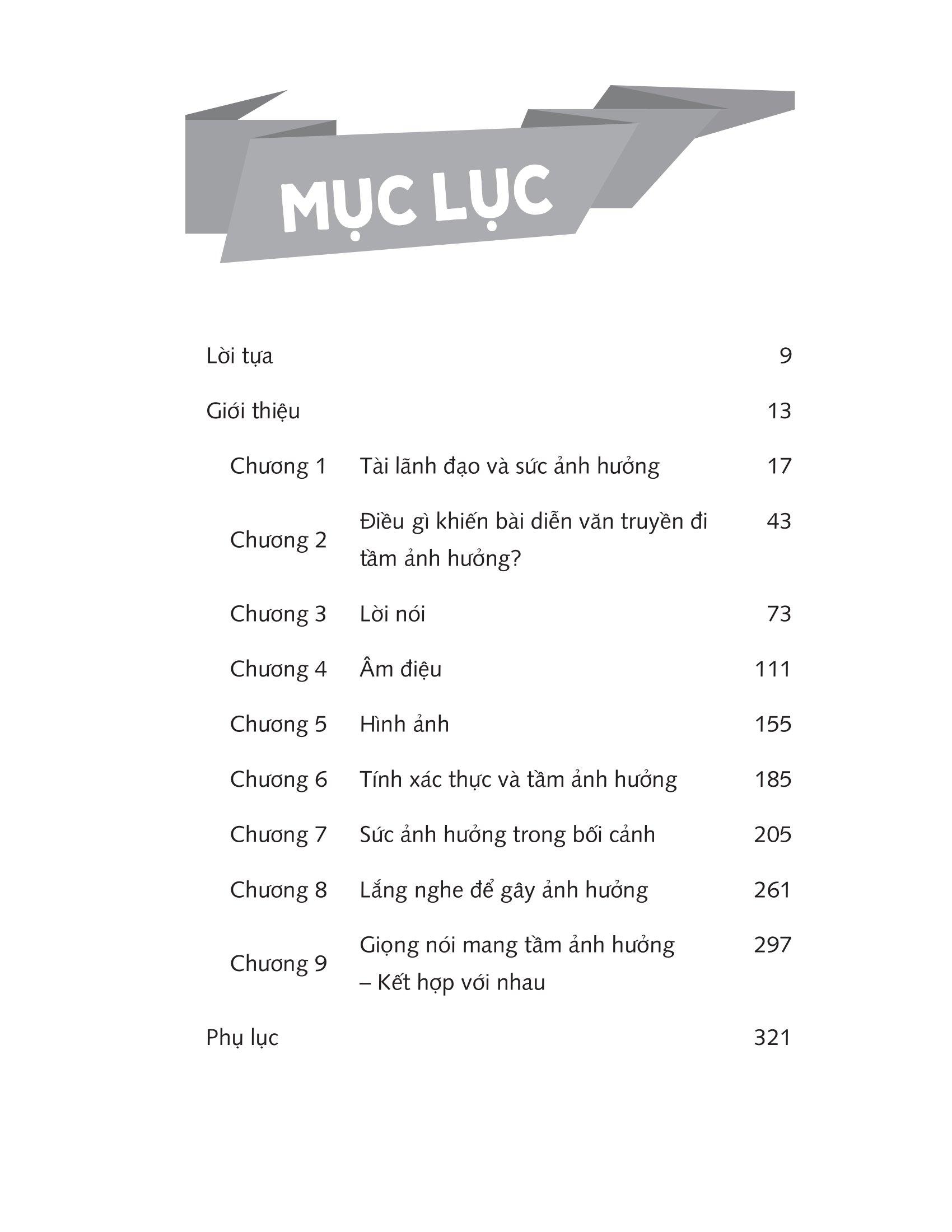 Hùng Biện Như Một Chuyên Gia Kỹ năng thuyết trình là một kỹ năng cần thiết đối với bất cứ ai. Trong cuốn sách này, Tiến sĩ Laura Sicola sẽ hướng dẫn cách để tạo nên một bài thuyết trình lôi cuốn và truyền cảm hứng. Bằng cách rèn luyện các kỹ năng như: xác định điểm mù trong giao tiếp, khám phá phương pháp sử dụng giọng nói nhằm thu hút người nghe, vượt qua rào cản tâm lý và thực hành cách kể chuyện, bạn hoàn toàn có thể trở thành một diễn giả lôi cuốn hoặc một nhà lãnh đạo truyền cảm hứng đối với tất cả mọi người. Cuốn sách trợ giúp chúng ta: