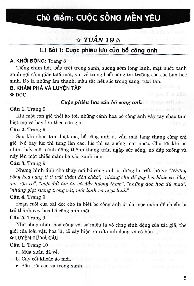 Bộ sách gồm đầy đủ các tuần, bài, chủ điểm với 4 nội dung: Đọc, Luyện từ và câu, Nói và nghe, Viết.
