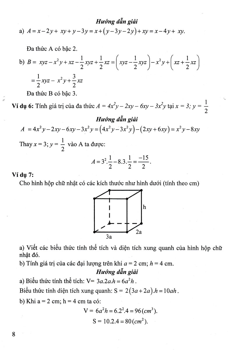 Hướng Dẫn Học Và Phương Pháp Giải Toán 8 - Tập 1 (Bám Sát SGK Chân Trời Sáng Tạo)  Sau một thời gian thực hiện chương trình giáo dục phổ thông mới, với cương lĩnh là giúp học sinh phát triển phẩm chất và năng lực vừa phải mở mang kiến thức vừa phải rèn luyện kĩ năng, quý Thầy, Cô và các em học sinh đã tiếp cận nội dung và phương pháp mới. Đồng hành cùng quý Thầy, Cô và các em học sinh, tác giả tiếp tục biên soạn cuốn sách “Hướng dẫn học và phương pháp giải toán 8 – Tập 1” với hy vọng sẽ là tài liệu tham khảo thiết thực cho quý Thầy, Cô và các em học sinh trong quá trình học tập và giảng dạy. Cuốn sách có nội dung bám sát bộ sách giáo khoa “Chân trời sáng tạo” của Nhà xuất bản Giáo dục Việt Nam. Ngoài ra quý phụ huynh có thể sử dụng cuốn sách làm tài liệu tham khảo nhằm giúp đỡ con em mình học môn Toán tốt hơn. Cuốn sách được biên soạn theo từng bài học và chia làm 3 phần. – Phần 1: Kiến thức cơ bản và ví dụ. – Phần 2: Các dạng toán có phương pháp giải và bài tập mẫu. − Phần 3: Bài tập ôn luyện theo từng dạng và có hướng dẫn giải. Cuối mỗi chương có phần bài tập tổng hợp.