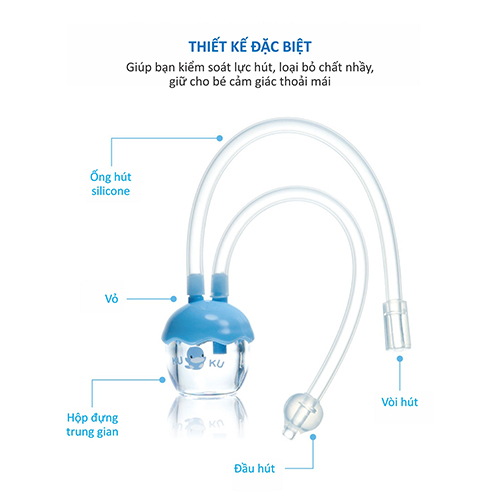 Dây hút mềm, có thể kiểm soát lực hút, chủ động điều chỉnh tốc độ cho phù hợp không làm tổn thương mũi bé. Nước nhầy hút ra được giữ ở thân ống và không chảy ngược lại, đảm bảo vệ sinh tối ưu.