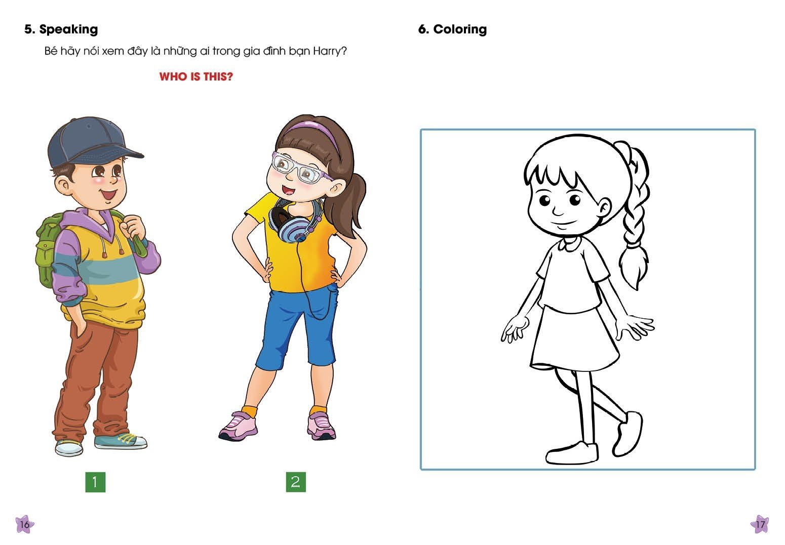 - Phần 6 Coloring (Tô màu) Đặc biệt, đi kèm với bộ sách này còn có link nghe qua giọng đọc thầy giáo bản ngữ, có kinh nghiệm lâu năm trong việc dạy tiếng Anh cho để các bé ôn luyện theo, tạo thói quen phát âm chuẩn ngay từ những buổi đầu làm quen và học tiếng Anh.