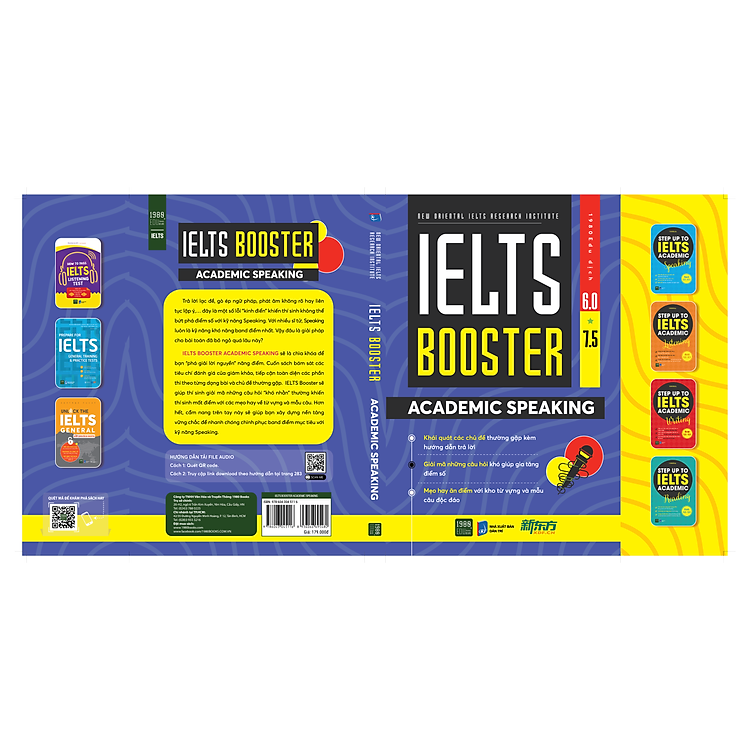 IELTS BOOSTER ACADEMIC SPEAKING sẽ là chìa khóa để bạn phá giải những lời nguyền nâng điểm. Cuốn sách bám sát những tiêu chí đánh giá của ban giám khảo, tiếp cận toàn diện các phần thi theo từng dạng bài và chủ đề thường gặp. IELTs Booster sẽ giúp thí sinh giải mã những câu hỏi “khó nhằn” thường khiến thí sinh mất điểm với các mẹo hay về từ vựng và mẫu câu. Hơn hết, cẩm nang trên tay này sẽ giúp bạn xây dựng nền tảng vững chắc để nhanh chóng chinh phục band điểm mục tiêu với kỹ năng Speaking.