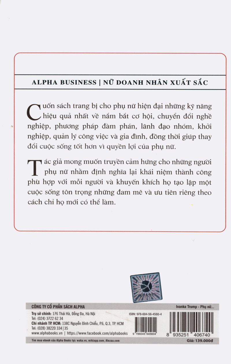 ✨Ivanka Trump - Phụ Nữ Hiện Đại Viết Lại Luật Thành Công: Cuốn Sách Trang Bị Cho Phụ Nữ Hiện Đại Những Kỹ Năng Hiệu Quả Nhất Về Nắm Bắt Cơ Hội, Chuyển Đổi Nghề Nghiệp, Phương Pháp Đàm Phán, Lãnh Đạo Nhóm, Khởi Nghiệp, Quản Lý Công Việc Và Gia Đình (Tặng Cây Viết Galaxy)