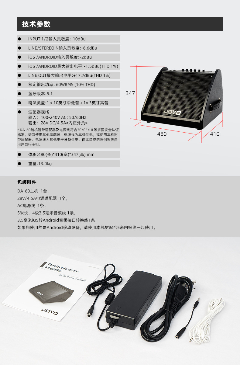 Mua tại TiktokJOYO DA-60 60W – Loa Amplifier Cho Keyboard, Trống Điện và Electric Bass Guitar với Bluetooth (DA60)