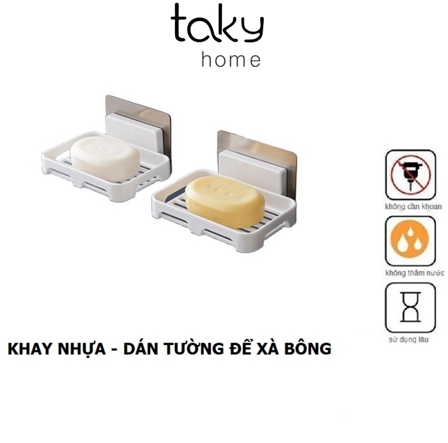 Giá Nhựa Trắng Để Xà Phòng Dán Tường Nhà Tắm Với Miếng 3M Siêu Chắc, TakyHome, Tiện Ích Giúp Cục Xà Bông Tắm Nhanh Khô Và Sạch Sẽ