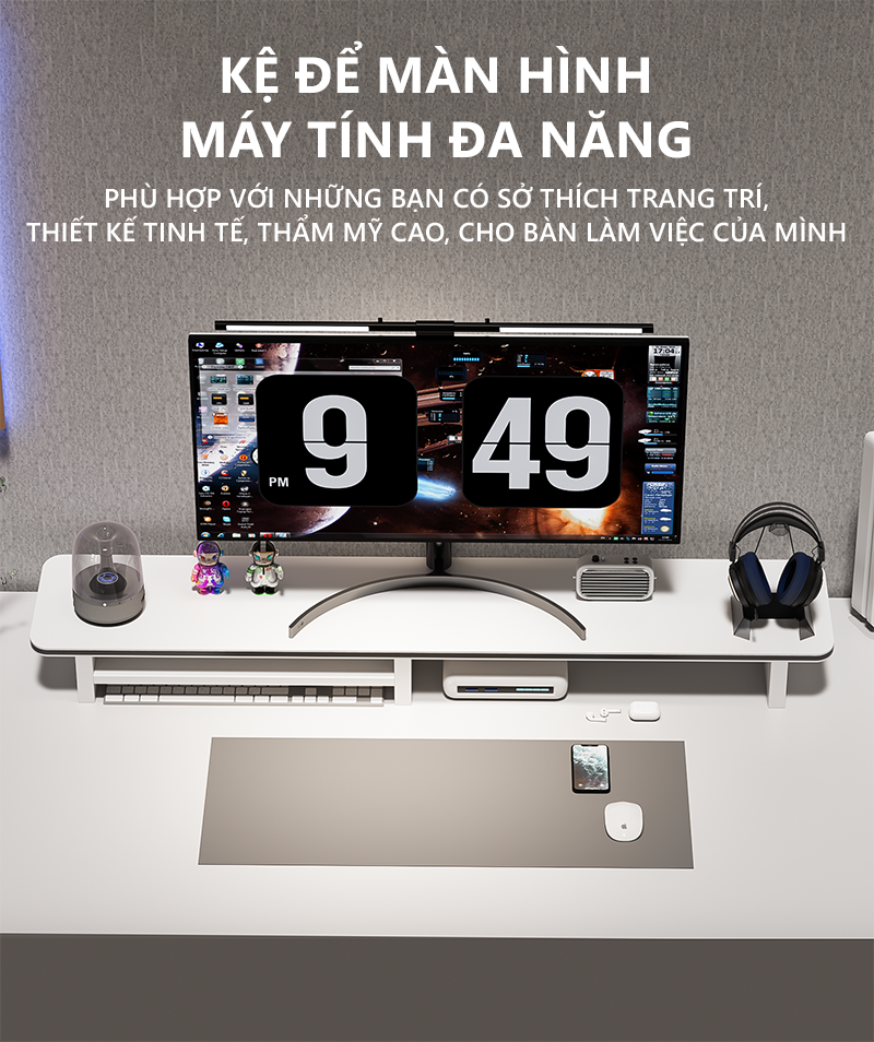 Công năng: Sắp xếp và trang trí bàn làm việc, bàn gaming khoa học và đẹp mắt