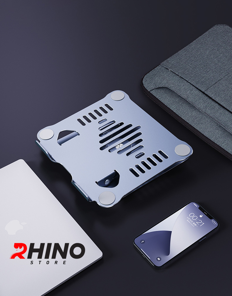 Kệ đỡ Laptop tản nhiệt Rhino KL301, giá đỡ máy tính nhôm cao cấp, gấp gọn Giá đỡ Laptop tản nhiệt Rhino KL301, kệ đỡ máy tính nhôm cao cấp, gấp gọn - Hàng chính hàng Đế tản nhiệt hợp kim nhôm cao cấp, nhôm siêu bền chính hãng Rhino