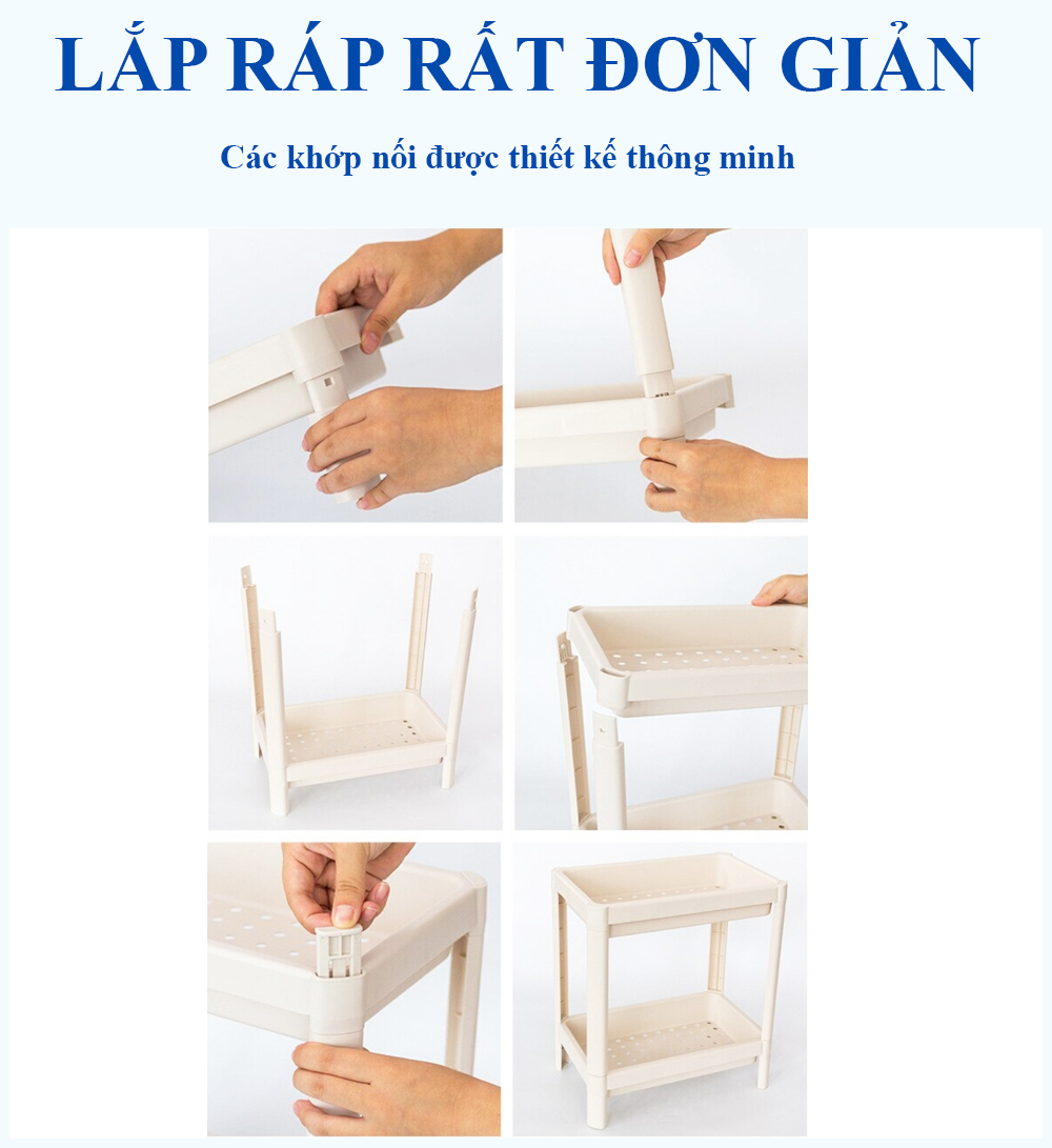 Thông tin sản phẩm: Thiết kế hiện đại, tháo lắp dễ dàng Kết cấu chắc chắn, chịu lực tốt Dễ dàng tùy biến cho nhiều không gia Kích thước: Chiều dài 38cm x chiều sâu 23cm x chiều cao 1,3m Chất liệu: Sản phẩm sản xuât từ nhựa nguyên sinh cao cấp xuất sứ Nhật Bản Màu sắc: Trắng Hiện đại Có thể làm kệ nhà tắm kệ phòng khách kệ đựng Sách Tùy theo nhu cầu sử dụng Phong cách: Hiện đại