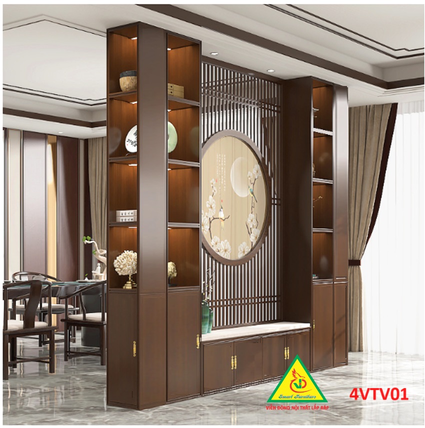 Đây là loại kệ tivi kiêm vách ngăn phòng khách và nhà bếp được dùng vừa với chức năng để tivi trang trí phòng khách, vừa được dùng với chức năng là vách ngăn cách giữa phòng khách và nhà bếp.