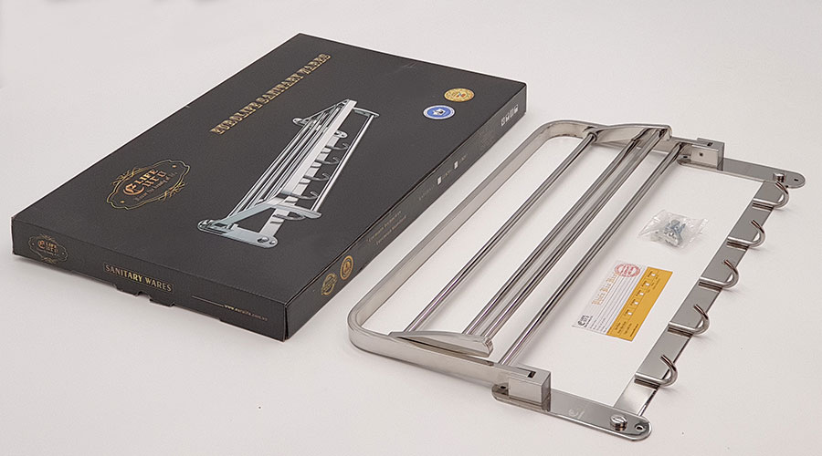 Kệ được thiết kế đang năng linh động với 1 máng để khăn, 1 máng treo phơi khăn tắm và 5 móc treo đồ, thuận tiên khi sử dụng