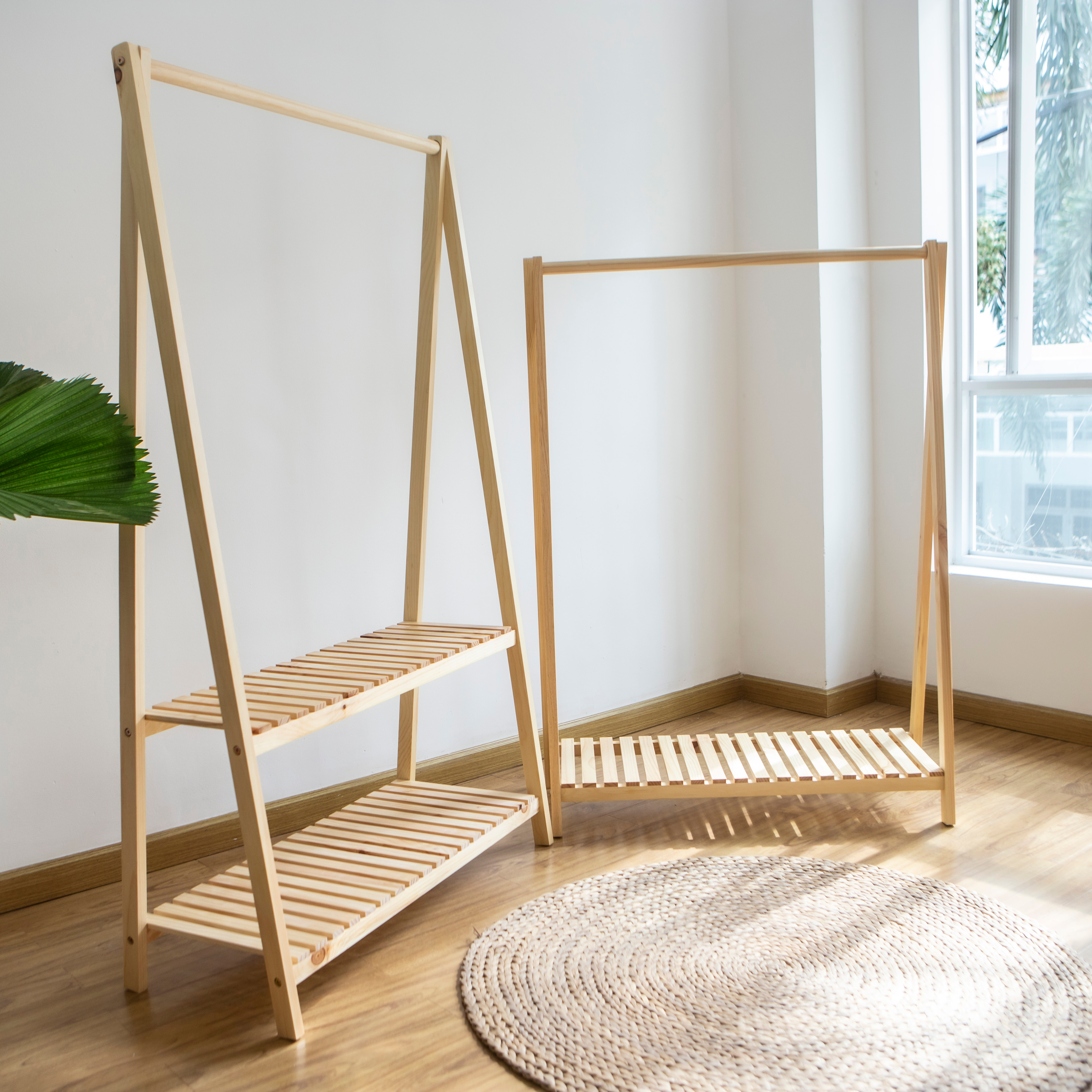 GIÁ TREO QUẦN ÁO THANH ĐƠN - SINGLE HANGER 1. THÔNG TIN SẢN PHẨM: - Kích thước: 86 x 44 x 125 cm (Dài x Rộng x Cao). - Chất liệu: Gỗ thông nhập khẩu
