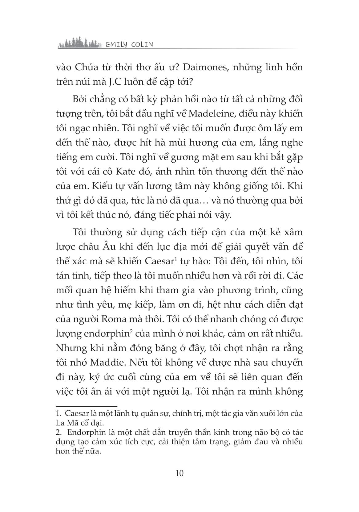 “Tôi lại thiếp đi khi đang suy nghĩ về cảm giác khi có được mọi thứ bạn muốn, chỉ để đánh mất nó… và biết điều bạn mong muốn, nhưng lại không có nó. Suy cho cùng, Aidan James và tôi quả là hai kẻ đối lập. Tất nhiên chúng tôi cũng còn một sự khác biệt quan trọng khác nữa: Tôi vẫn đang còn sống.”