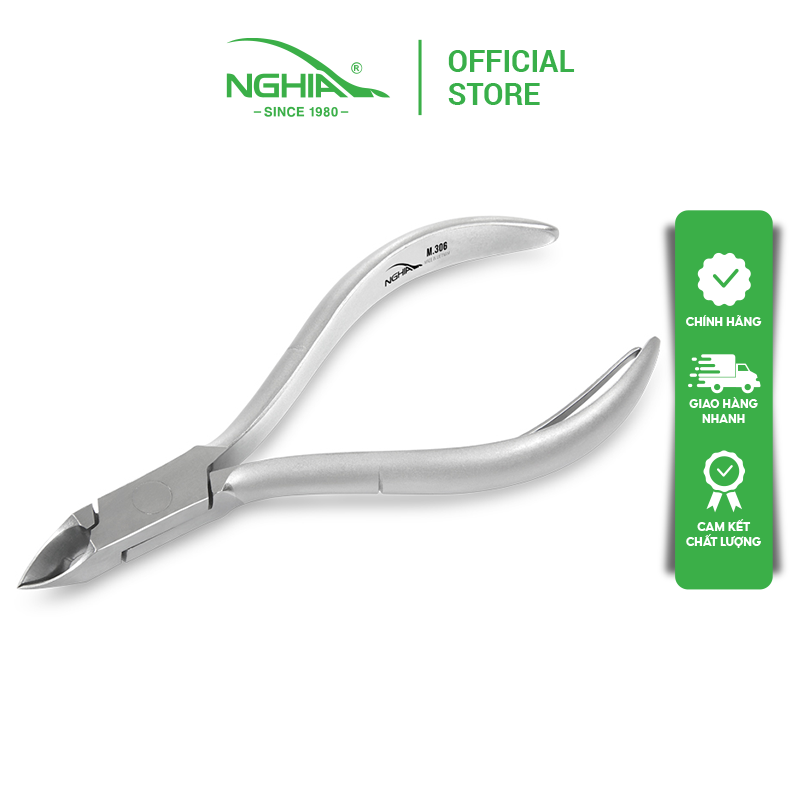 Chất liệu Thép carbon, an toàn cho người dùng.     Màu sắc  Trắng Crom.     Kiểu chống  1 chống .     Kiểu mang 2 mang vuông.      Kích thước  (DxRxC mm) Full Jaw. 109(+/-0.8)x48(+/-0.8)x10.5(+/-0.5)     Trọng lượng  66 gr .     Thiết kế Thiết kế kiểu dáng phù hợp với bàn tay người Châu Á.        Lưỡi kềm sắc mỏng, tinh xảo, độ chính xác cao nên cắt chính xác gọn gàng không làm tổn thương da khi cắt.       Lưỡi kềm bén ngọt, độ bền lâu dài, không cần mài lại khi mua.        Sản phẩm được sản xuất theo chuẩn ISO 9001 - 2015 và kiểm tra chất lượng 100% trước khi đưa ra thị trường.     Thương hiệu Kềm Nghĩa Được người tiêu dùng và thợ chuyên nghiệp ưu tiên lựa chọn hơn 20 năm, đạt được nhiều giải thưởng như: Hàng Việt Nam chất lượng cao, Thương hiệu quốc gia.      Bao bì Bao Silimi.     Mô tả    Sản phẩm kềm cắt móng M.306 của Kềm Nghĩa được xem là một trong những sự lựa chọn hàng đầu của khách hàng. Đây là một trong những sản phẩm bán chạy nhất của Kềm Nghĩa hiện nay. Sản phẩm được chế tác từ chất liệu cao cấp, an toàn cho người sử dụng. Mũi và lưỡi kềm được thiết kế phù hợp để dễ đi vào phần da và làm sạch phía trong móng. Chống kềm và rãnh giúp tự động bung cán kềm ra khi cắt mà không cần các ngón tay đẩy giúp người dùng dễ dàng tự cắt da tại nhà.  Chế độ bảo hành:    Nếu sản phẩm bị lỗi kỹ thuật, quý khách có thể đổi lại tại Showroom của Công ty. Lưu ý sử dụng:    Sản phẩm chỉ dùng để cắt móng tay, chân, không dùng để cắt các vật cứng.  Cách bảo quản sản phẩm :
