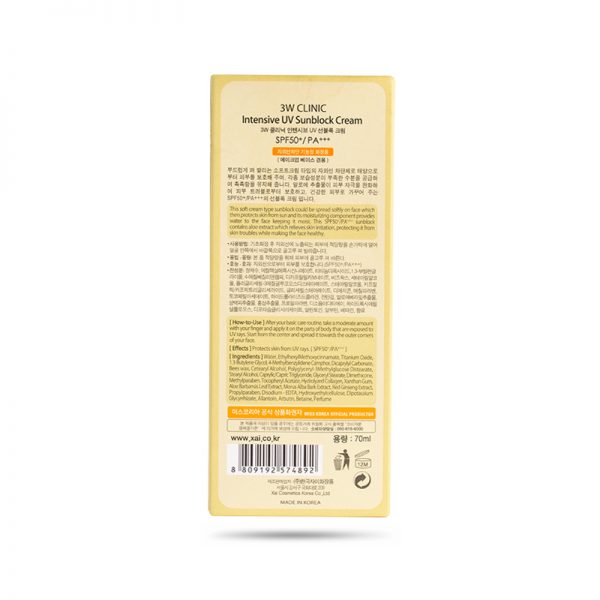 Kem Chống Nắng 3w Clinic Intensive Uv Sunblock Cream Spf 50 Pa+++ 70 Ml
