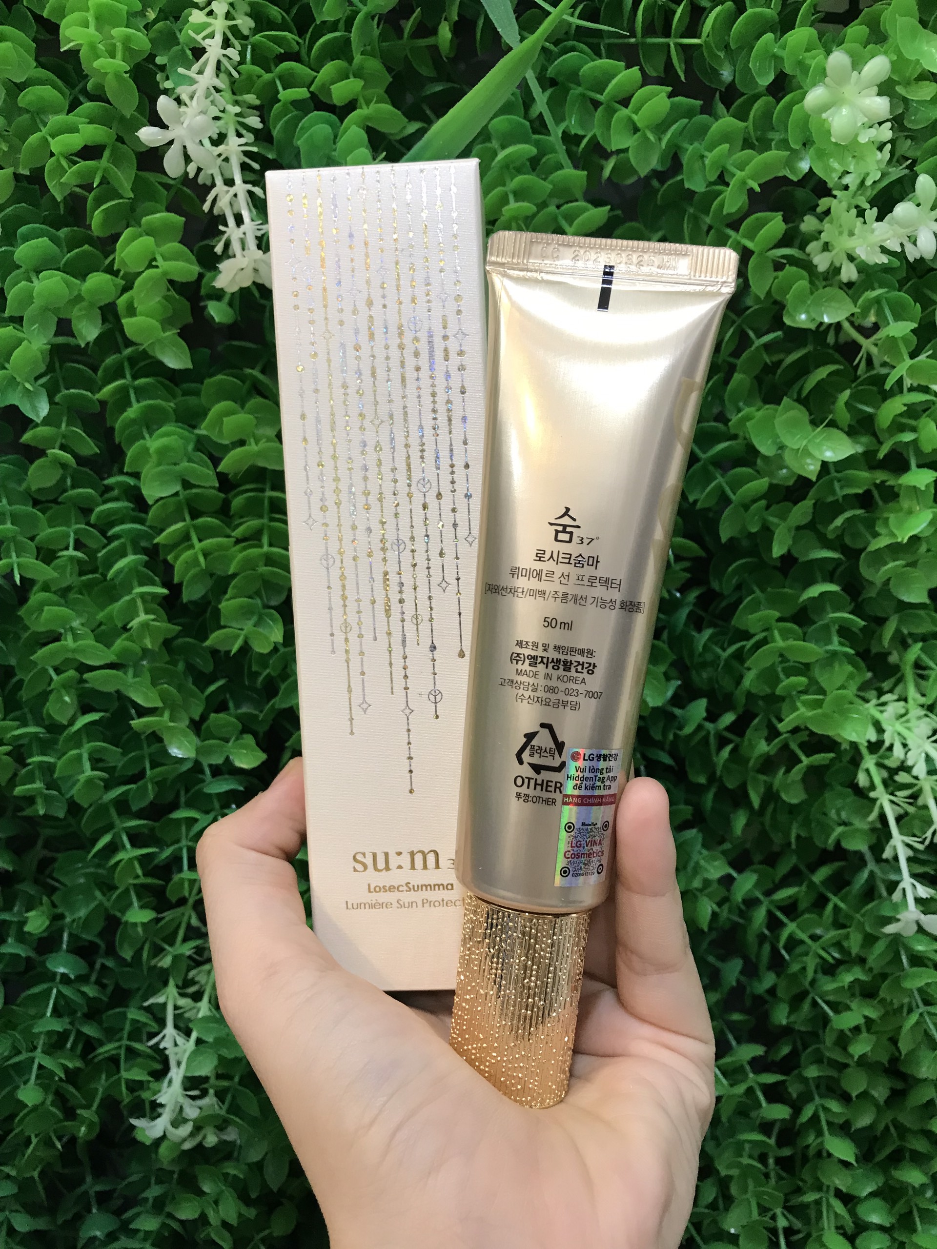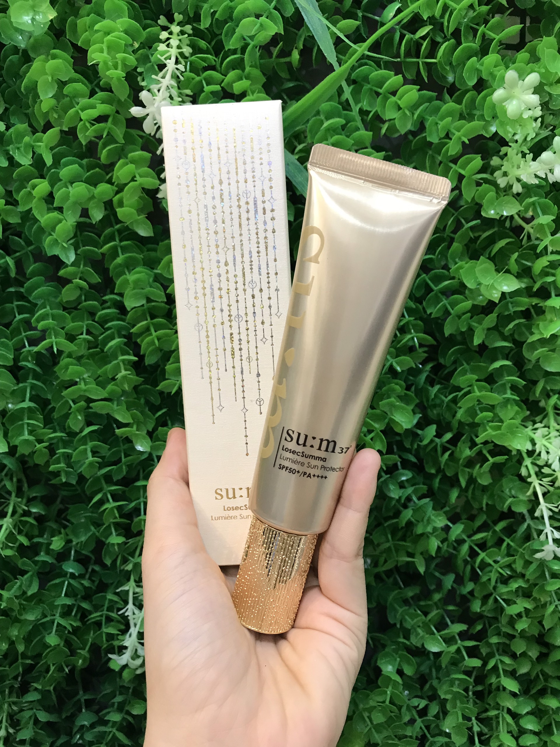 Kem chống nắng cao cấp su:m37 chứa các thành phần vảy vàng và giúp dưỡng trắng chống lão hoá da
