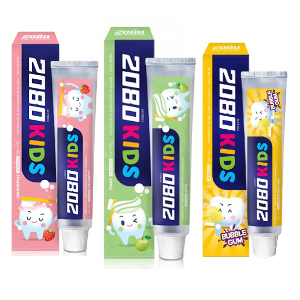 KEM ĐÁNH RĂNG TRẺ EM CAO CẤP HÀN QUỐC 2080 KIDS(Tinh chất hương Dâu)Kem đánh răng dành cho trẻ em chứa Flour, Xilitol, Vitamin và Canxi rất tốt đối với trẻ nhỏ ngăn ngừa sâu