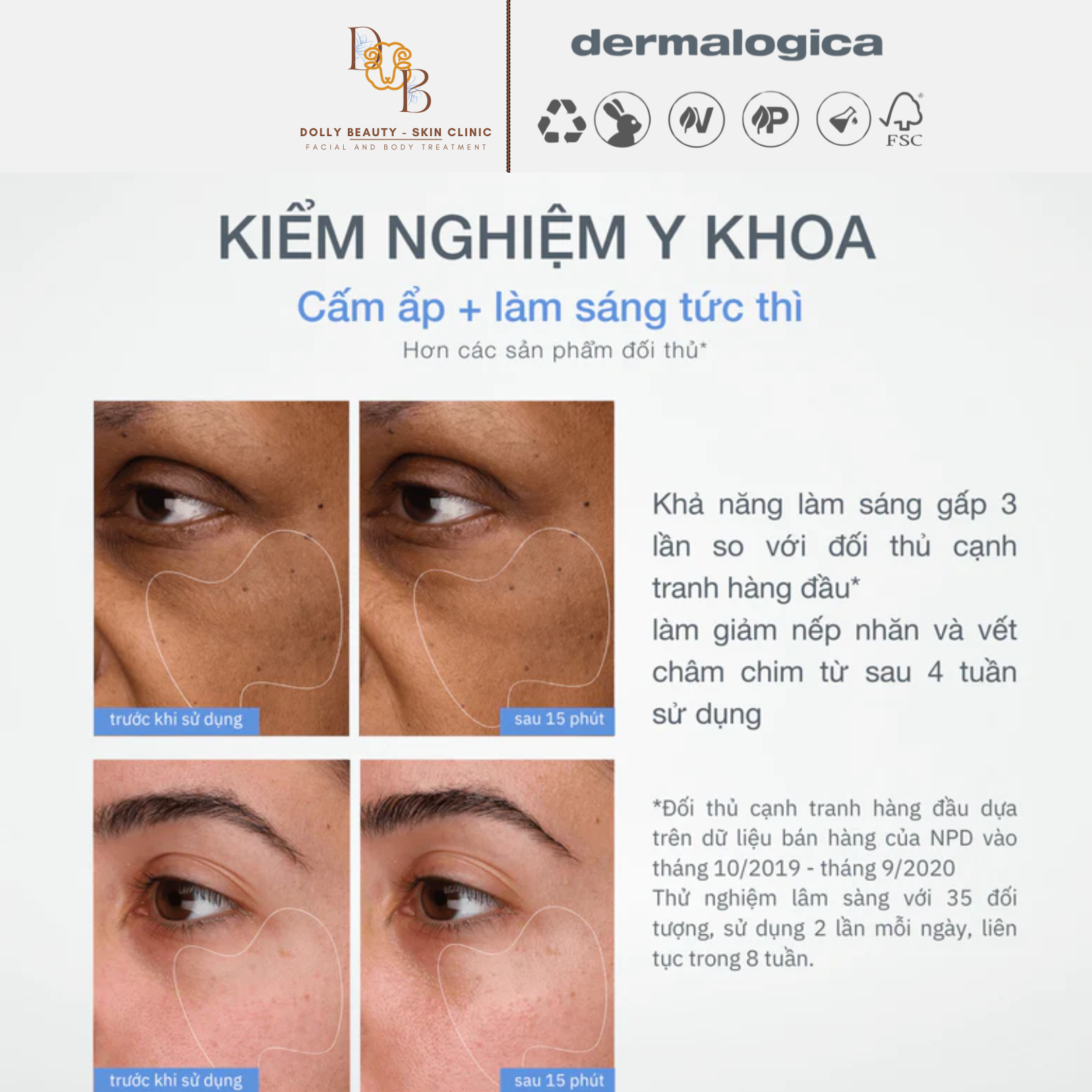 - Làm sáng da tức thì, đồng thời duy trì độ sáng da lâu dài Sau bước làm sạch và toner, nhẹ nhàng thoa đều khắp mặt và cổ. Sử dụng 2 lần mỗi ngày, sáng và tối.