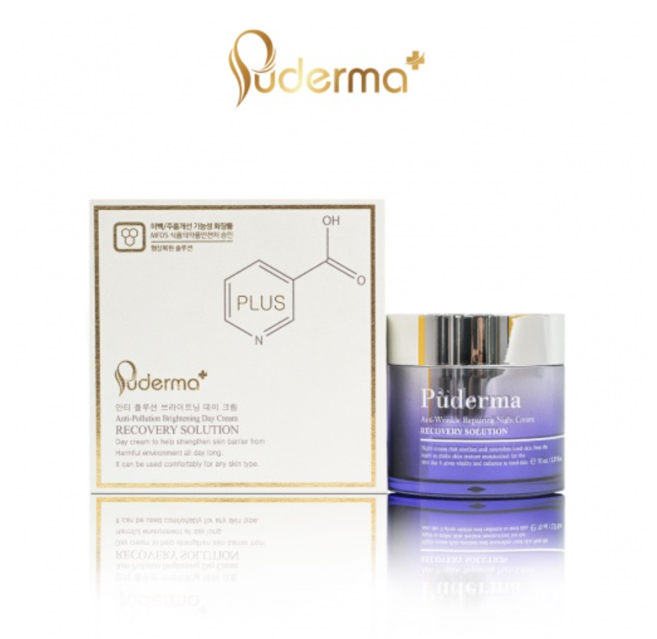 - Kem dưỡng da ban đêm Puderma Anti-Wrinkle Repairing Night Cream có chiết xuất tế bào gốc của cà rốt, hồng sâm, trà xanh, hoa hồng nhung tuyết, hoa cúc la mã, cây tre mỡ được sản xuất bằng công nghệ siêu phân tử nano giúp dưỡng chất nhanh chóng thấm sâu vào 3 lớp da nhằm tăng cường khả năng làm trắng sáng, trẻ hóa làn da.