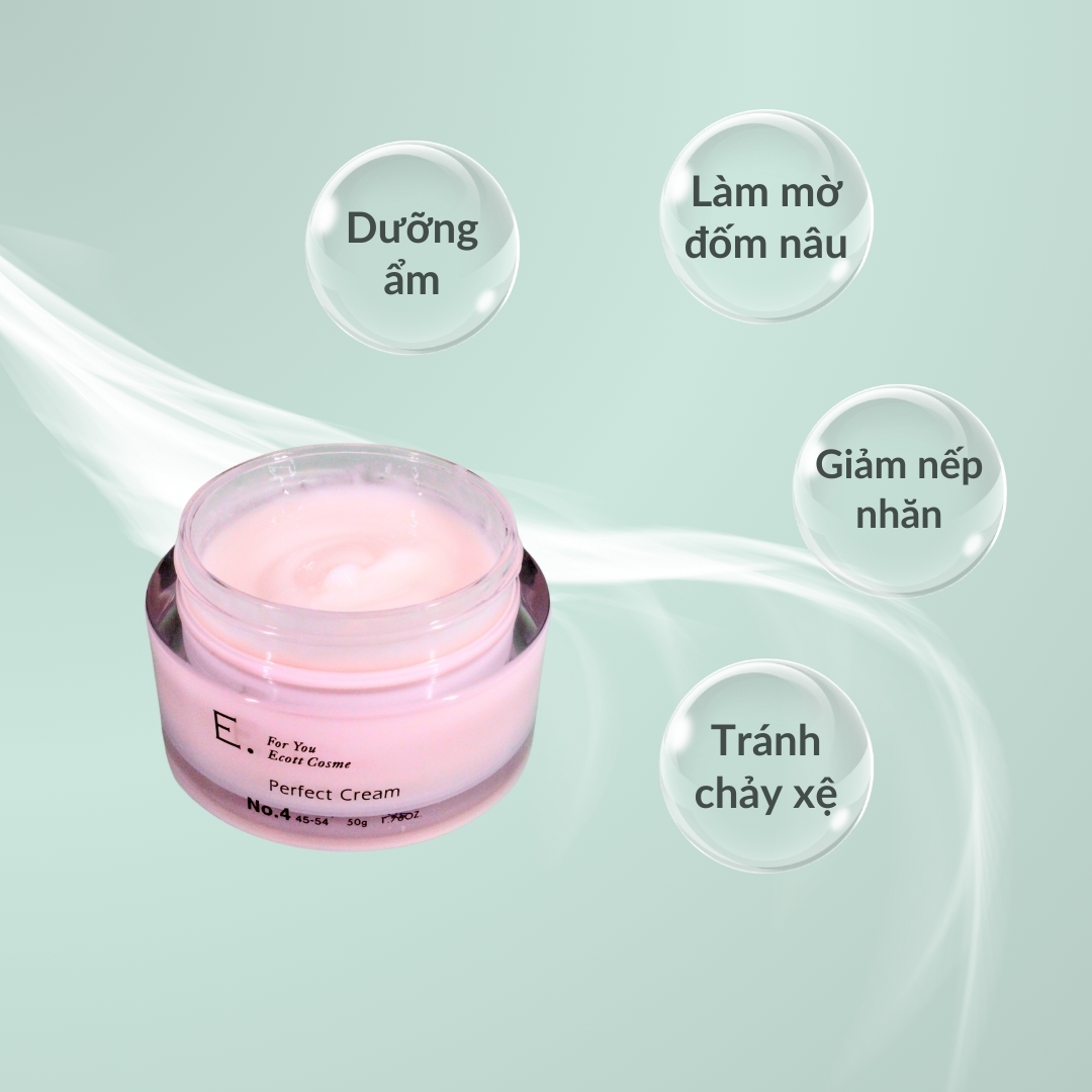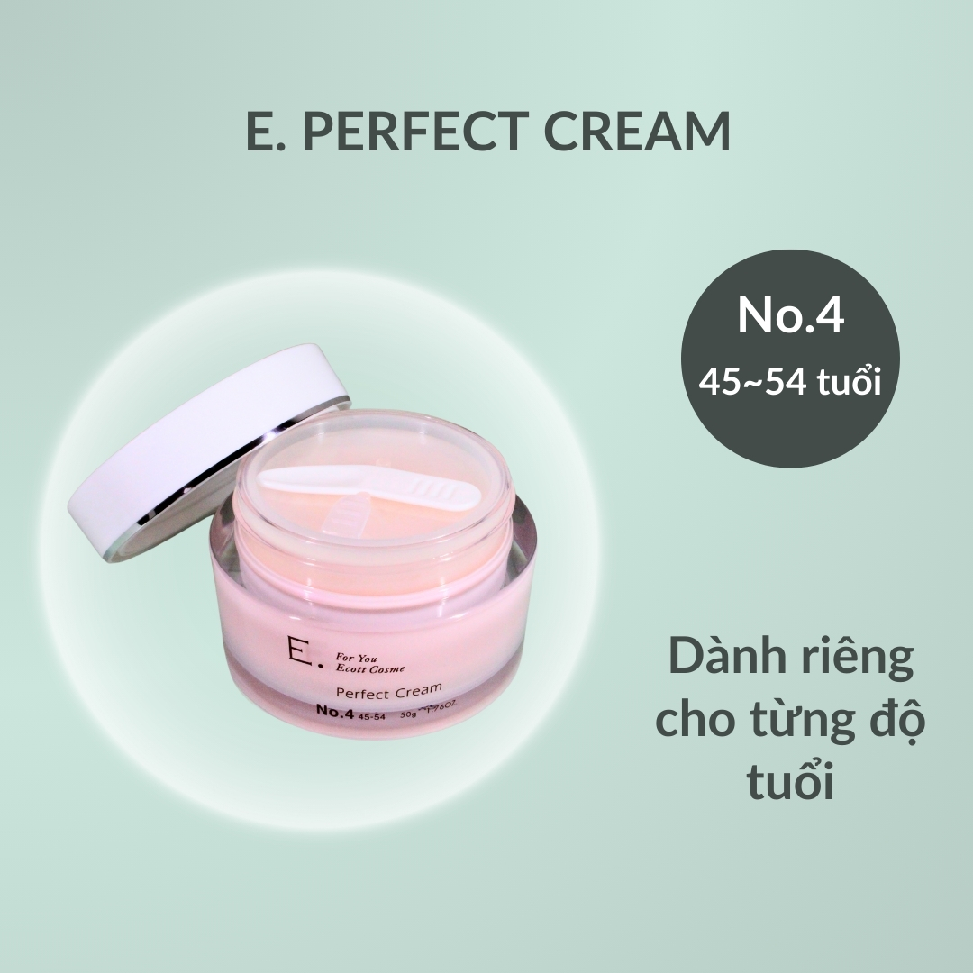 Kem dưỡng da 5 trong 1 E. Perfect Cream 4 với chất kem mịn được sử dụng hợp chất Axit hyaluronic thủy phân làm tăng khả năng giữ ẩm.