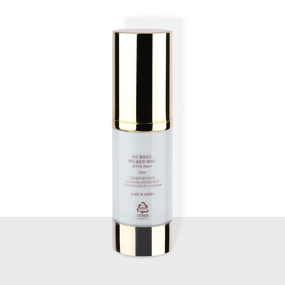 Việc khổ sở nhất của làn da dầu mỗi khi trang điểm chính là da bị đổ dầu nhiều, lỗ chân lông to khiến cho lớp nền nhanh bị xuống tông, kém mịn màng. Sử dụng kem lót là bước không thể thiếu để sở hữu lớp trang điểm bền màu, đẹp hoàn hảo. Vì vậy, loại kem lót có khả năng kiềm dầu và se khít lỗ chân lông là lựa chọn tối ưu nhất. Kem lót trang điểm Queenie Flawless Magic Glow Base SPF 25 PA++ sẽ cho bạn một lớp lót mịn màng. Với thành phần Allantoin, tinh dầu bơ, Na-Hyaluronate, hợp chất từ vitamin E và các thành phần từ thực vật cung cấp độ ẩm tự nhiên cho da, bảo vệ da được an toàn trước các tia UV có hại, giúp che phủ những khuyết điểm trên da, hạn chế việc tiết bã nhờn, giữ cho lớp trang điểm luôn mịn màng và đều màu.
