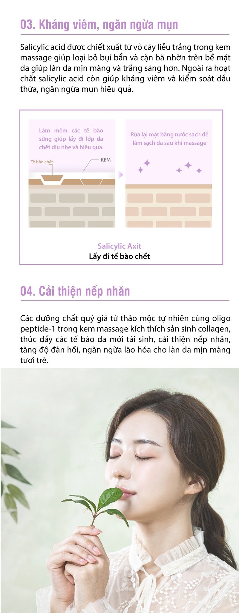 - Massage nhẹ nhàng cho làn da mềm mịn.