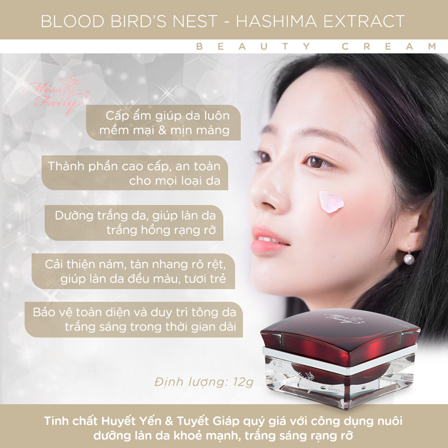 Kem dưỡng trắng da Huyết Yến Tuyết Giáp Miss Fairy – Bí quyết dưỡng trắng hoàn hảo từ hoàng cung Sở hữu làn da trắng sáng rạng rỡ không tì vết an toàn và nhanh