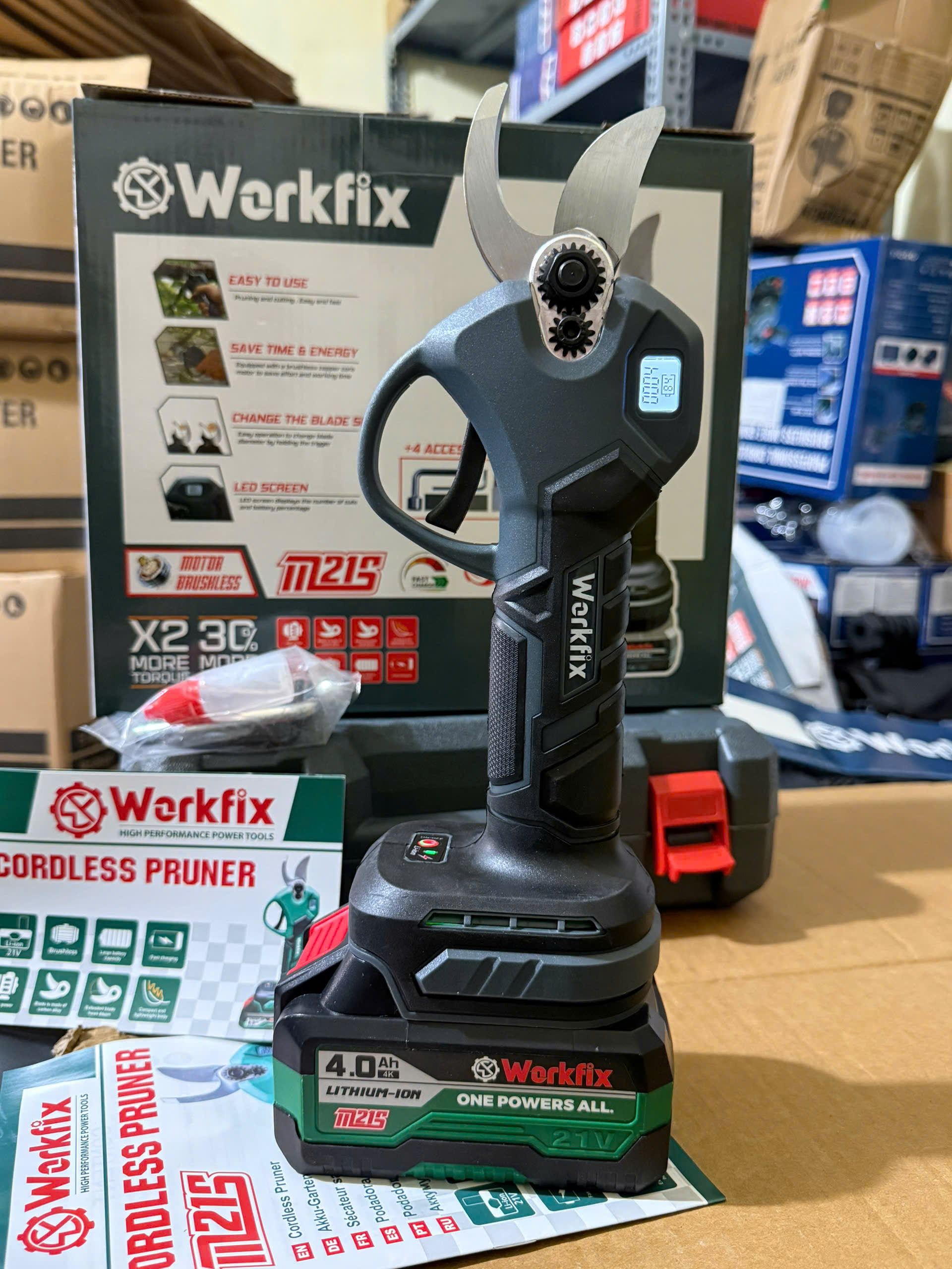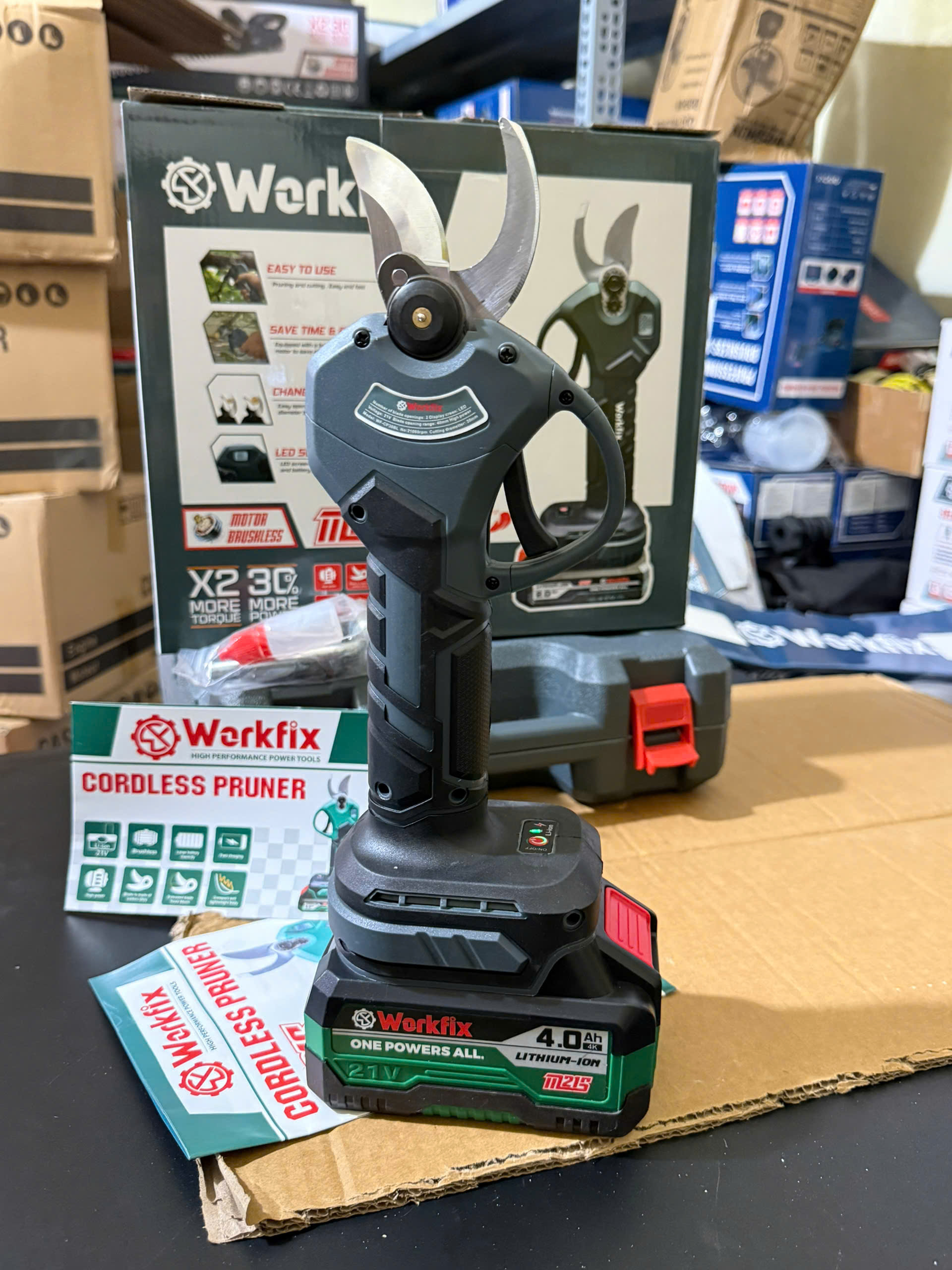 ✨Kéo cắt cành pin WORKFIX WF-CP30BL, Động cơ Không chổi than, Màn hình led hiển thị, Cắt 3cm