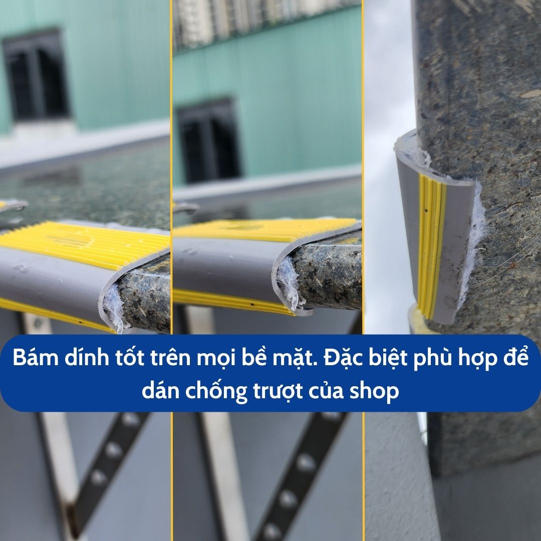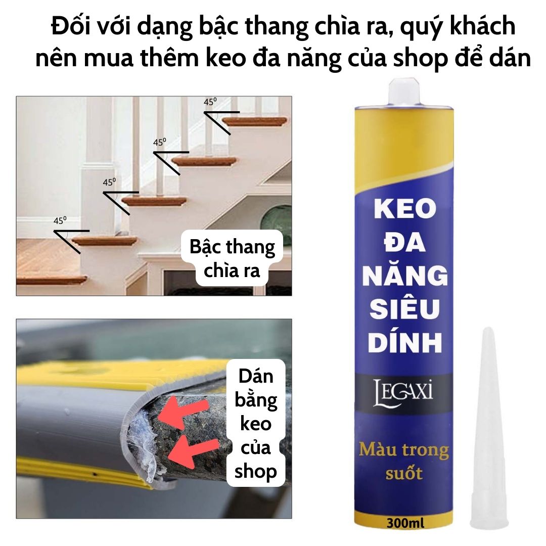 ⭕⭕ Tuy chống trượt có sẵn keo nhưng chỉ dán tốt với dạng bậc thang góc vuông ⭕⭕ Đối với bậc thang có mặt trên chìa ra quý khách nên mua thêm keo đa năng