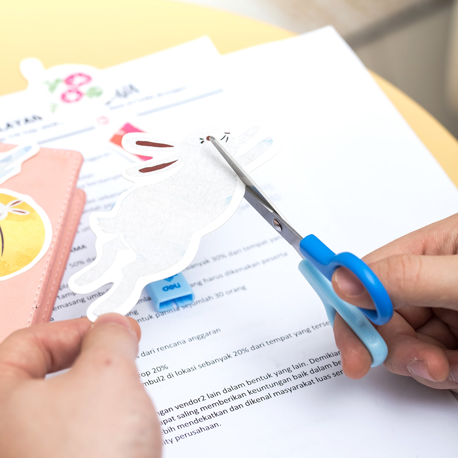 Kéo Thủ Công Học Sinh 121mm Deli - Lưỡi Thép Không Gỉ, Vỏ An Toàn, Màu Hồng/Xanh