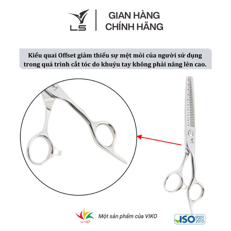 Kéo cắt tóc LS là một thương hiệu được sản xuất bởi Công ty TNHH Dụng cụ cắt Việt Hàn (Viko cutting tools Company limited) - đáp ứng đầy đủ các tiêu chuẩn quốc tế. Kéo LS thuộc dòng sản phẩm phổ thông, hướng tới đại đa số khách hàng trung bình tại các tỉnh thành trong cả nước. Với hệ thống bán hàng rộng khắp được xây dựng trong 14 năm phát triển, Kéo LS luôn nỗ lực phục vụ khách hàng một cách thuận tiện nhất. THÔNG TIN SẢN PHẨM KÉO TỈA TÓC OFFSET VÊNH LS TA130
