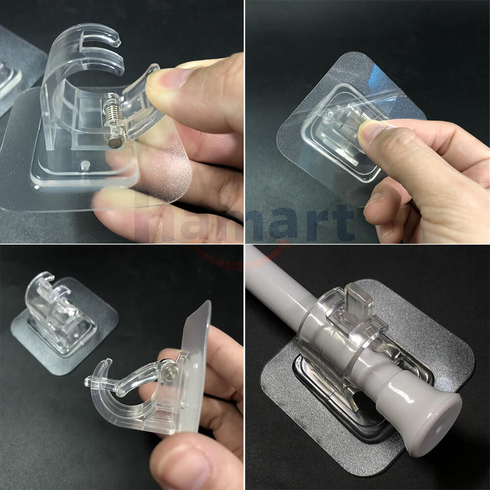 • Dụng cụ móc dán tường dùng gắn thanh treo đồ không cần khoan lỗ có thể điều chỉnh liền mạch