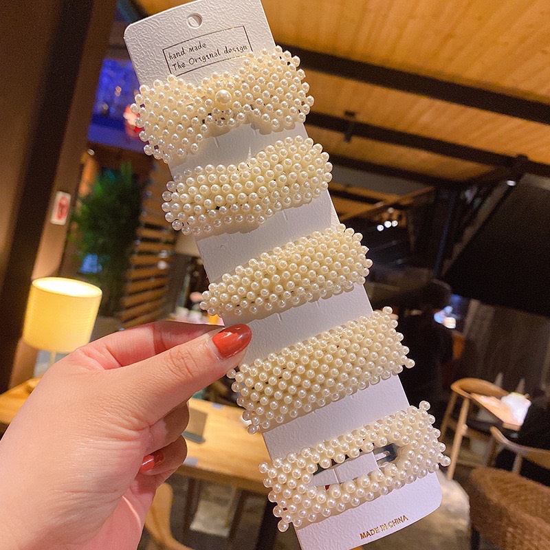 ✨Kẹp Tóc Hợp Kim Hình Học Đính Ngọc Trai Phong Cách Hàn Quốc Cho Nữ