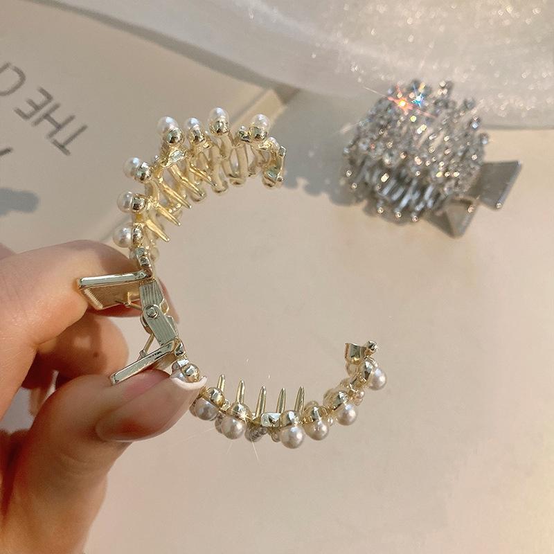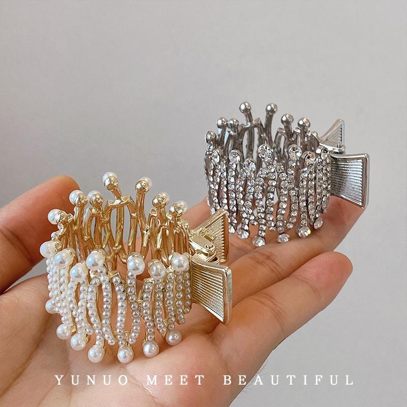 ✨Kẹp tóc tròn đính đá và ngọc trai giả cho nữ, kẹp tóc đuôi ngựa tròn phong cách Hàn Quốc thời trang