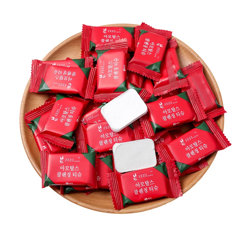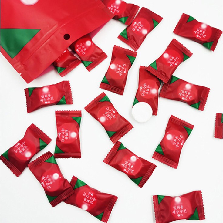 KHĂN GIẤY NÉN RỬA MẶT DẠNG VIÊN KẸO HÀN QUỐC, KHĂN NÉN ƯỚT DẠNG VIÊN Thông tin sản phẩm - Kích thước GIẤY NÉN VIÊN KẸO : 20x22cm - Chất liệu: Sợi vải dài -