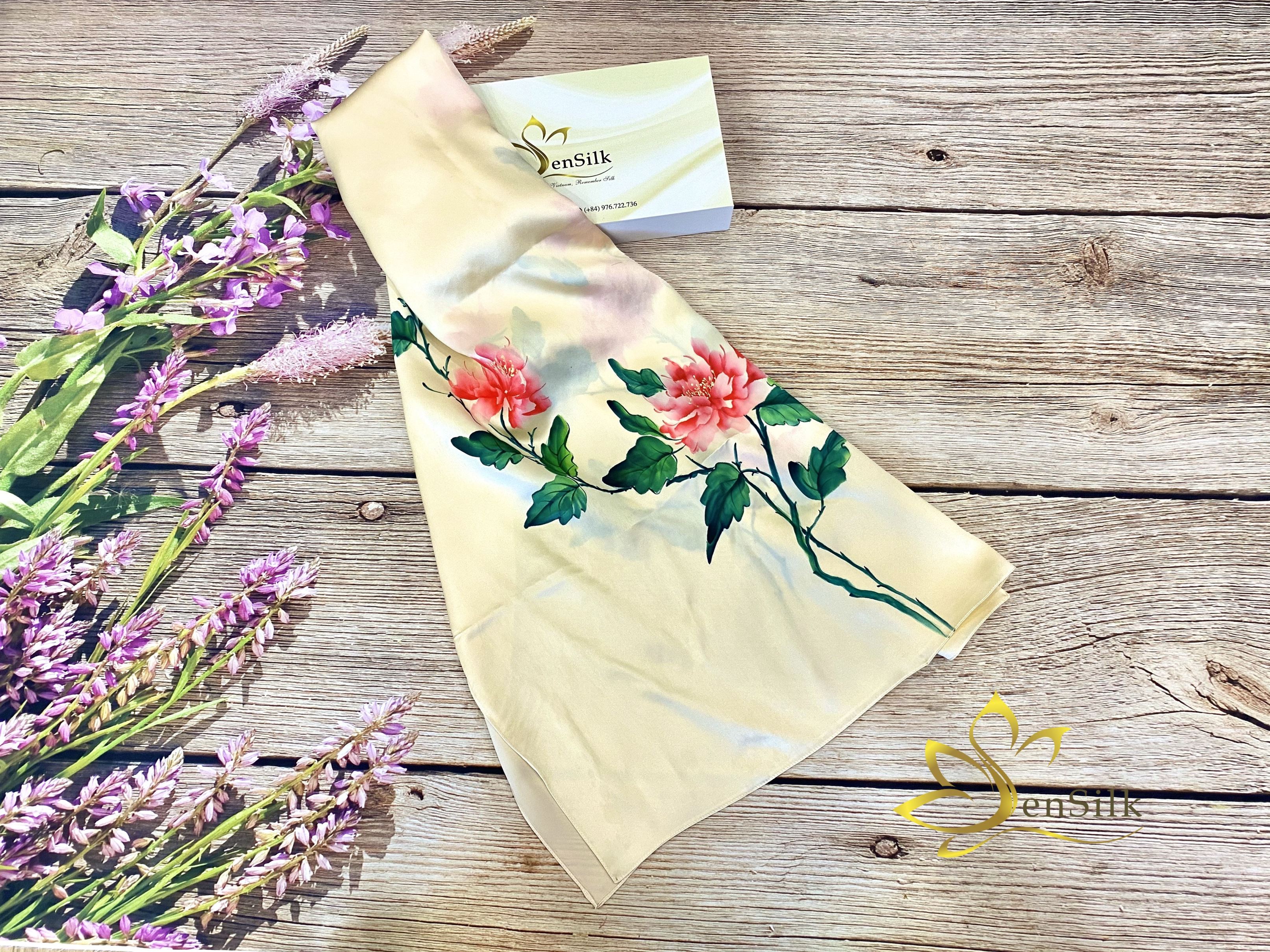Khăn Lụa Vẽ Tay Hoa Mẫu Đơn SenSilk – Quà Việt Nam được xem là loài hoa của sự vương giả, phú quý và giàu sang. Chính bởi vậy, mẫu đơn không chỉ được người ta ưa chuộng bởi vẻ đẹp, khí chất đặc biệt mà còn bởi những ý nghĩa tốt lành mà nó mang lại.!