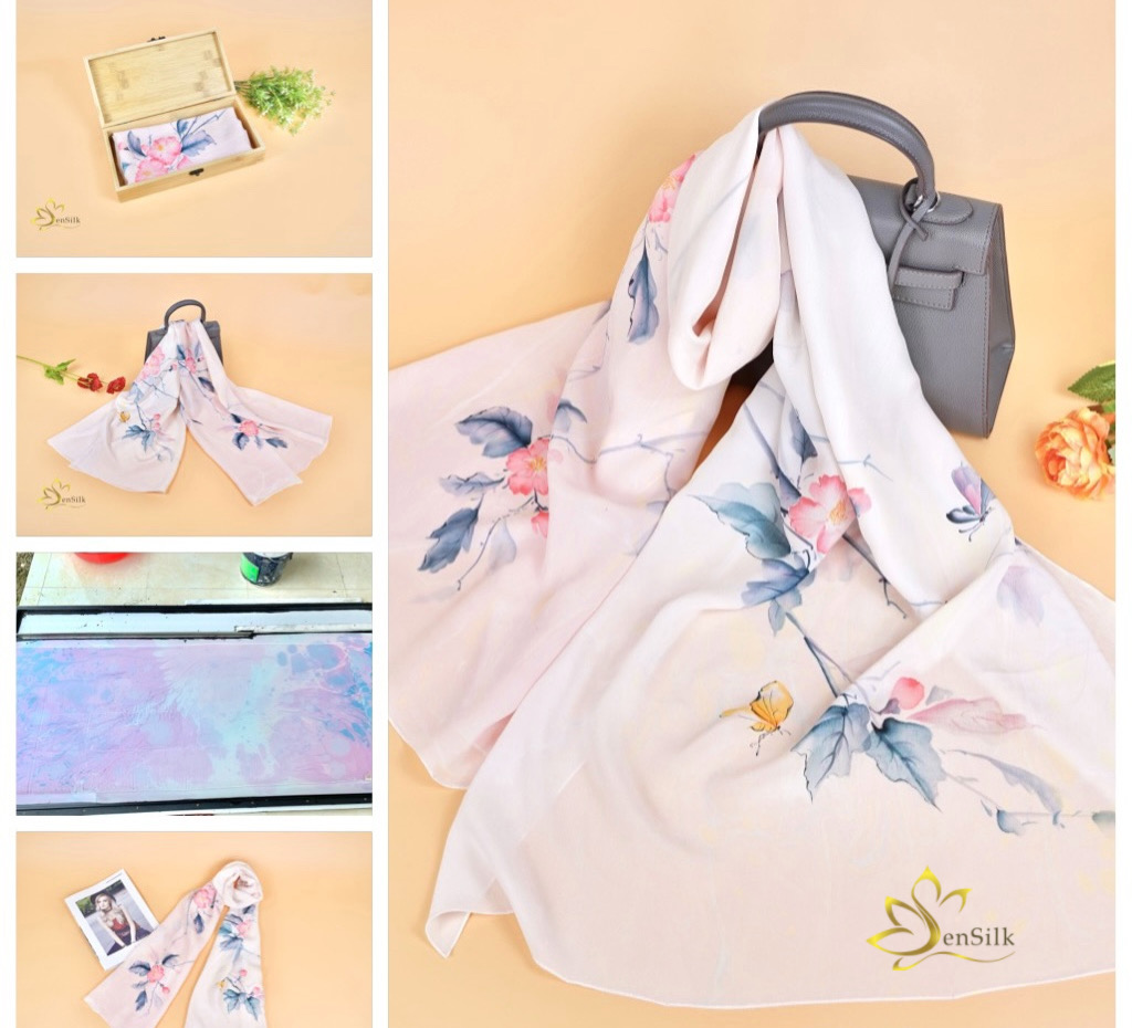 SenSilk – Lụa Tơ Tằm Thuần Việt kết hợp hài hoà giữa Lụa tơ tằm Bảo Lộc cao cấp với công nghệ in kỹ thuật số hiện đại tạo nên những chiếc khăn lụa in kỹ