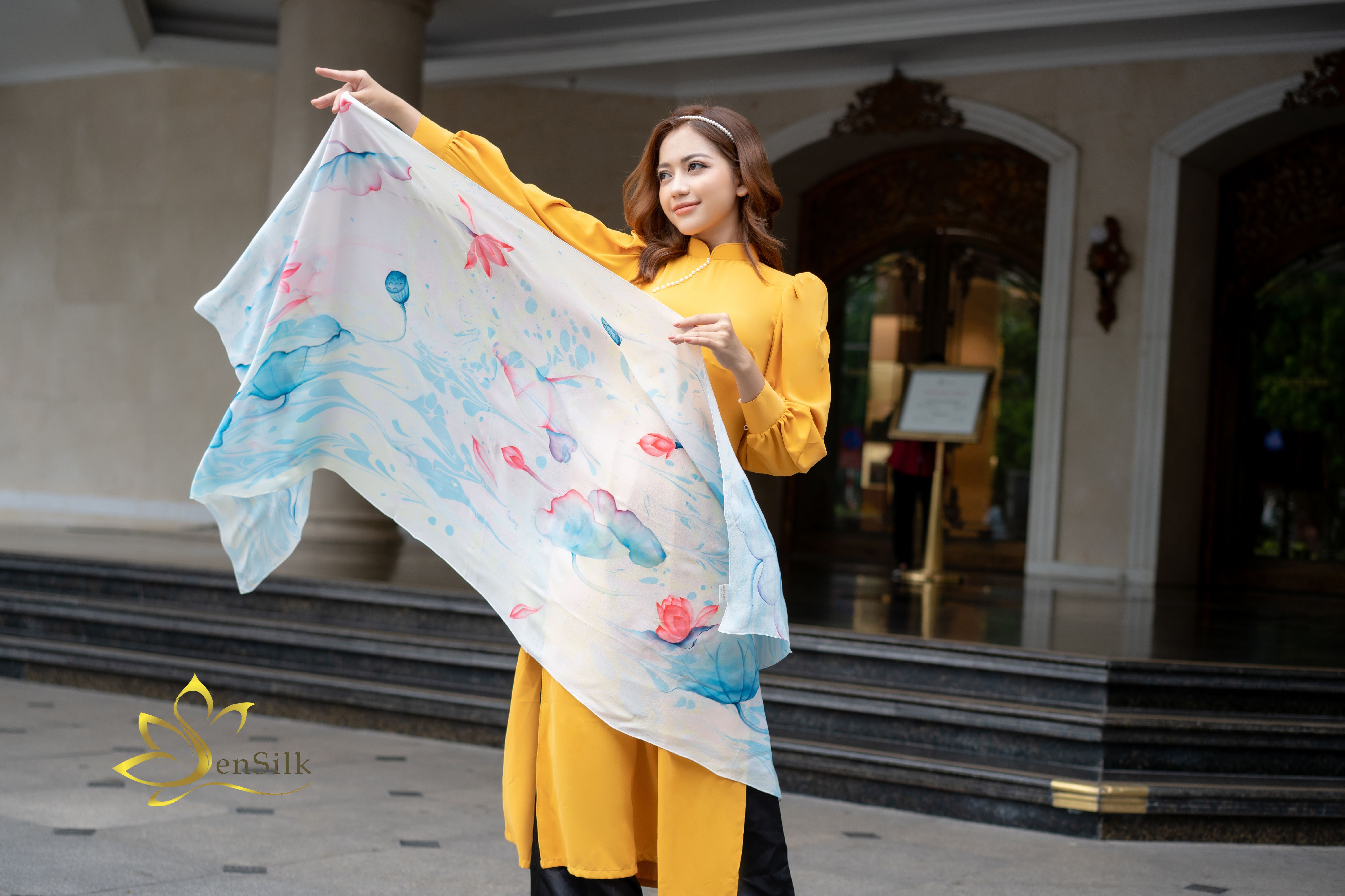 SenSilk – Lụa Tơ Tằm Thuần Việt kết hợp hài hoà giữa Lụa tơ tằm Bảo Lộc cao cấp với công nghệ in kỹ thuật số hiện đại tạo nên những chiếc khăn lụa in kỹ