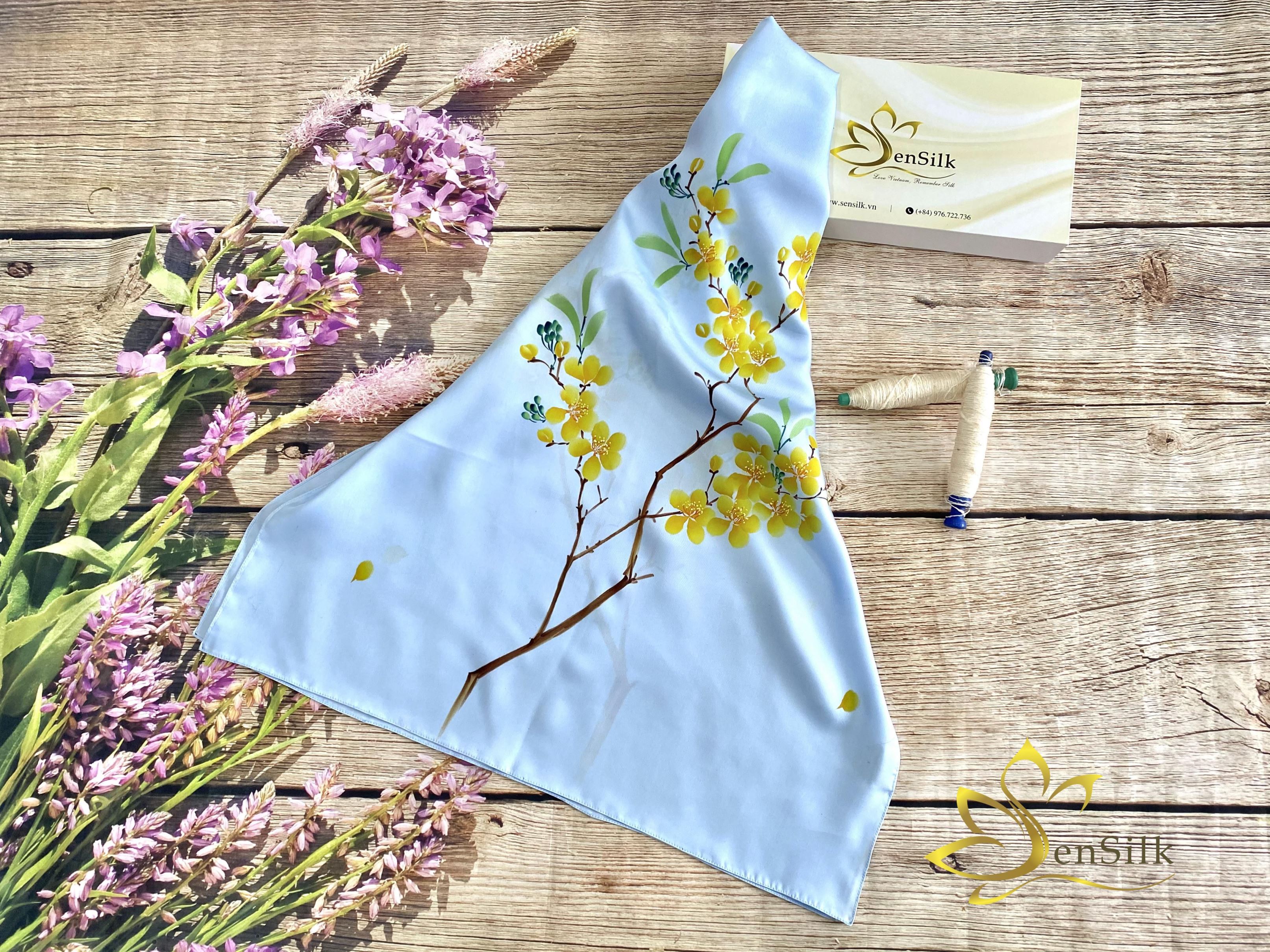 Mua tại TiktokKhăn Lụa Tơ Tằm Vẽ Tay Hoa Mai SenSilk biểu trưng cho 5 điều tốt lành bao gồm hạnh phúc, may mắn, trường thọ, thành công và hòa bình. Ý nghĩa này xuất phát từ việc hoa mai có năm cánh hoa và tên khác của nó là hoa năm phước lành. Hoa mai có ý nghĩa sâu sắc trong lòng người Việt, đặc biệt là người dân Nam bộ. Hoa mai cũng là một trong 4 tứ mộc “Tùng, Cúc, Trúc, Mai” Mai vàng luôn là loài hoa xuất hiện trong những ngày Tết Nam Bộ. Màu vàng của hoa mai từ lâu được xem là màu hy vọng, tượng trưng cho sự giàu sang phú quý (vì trùng với màu của vàng), hợp với niềm hân hoan chờ đón Tết đang rạo rực trong lòng người dân. ĐẶC ĐIỂM NỔI BẬT CỦA KHĂN LỤA VẼ TAY SENSILK LIMITED – SILK PAINTING *SenSilk nhận vẽ thủ công theo yêu cầu riêng của bạn nha