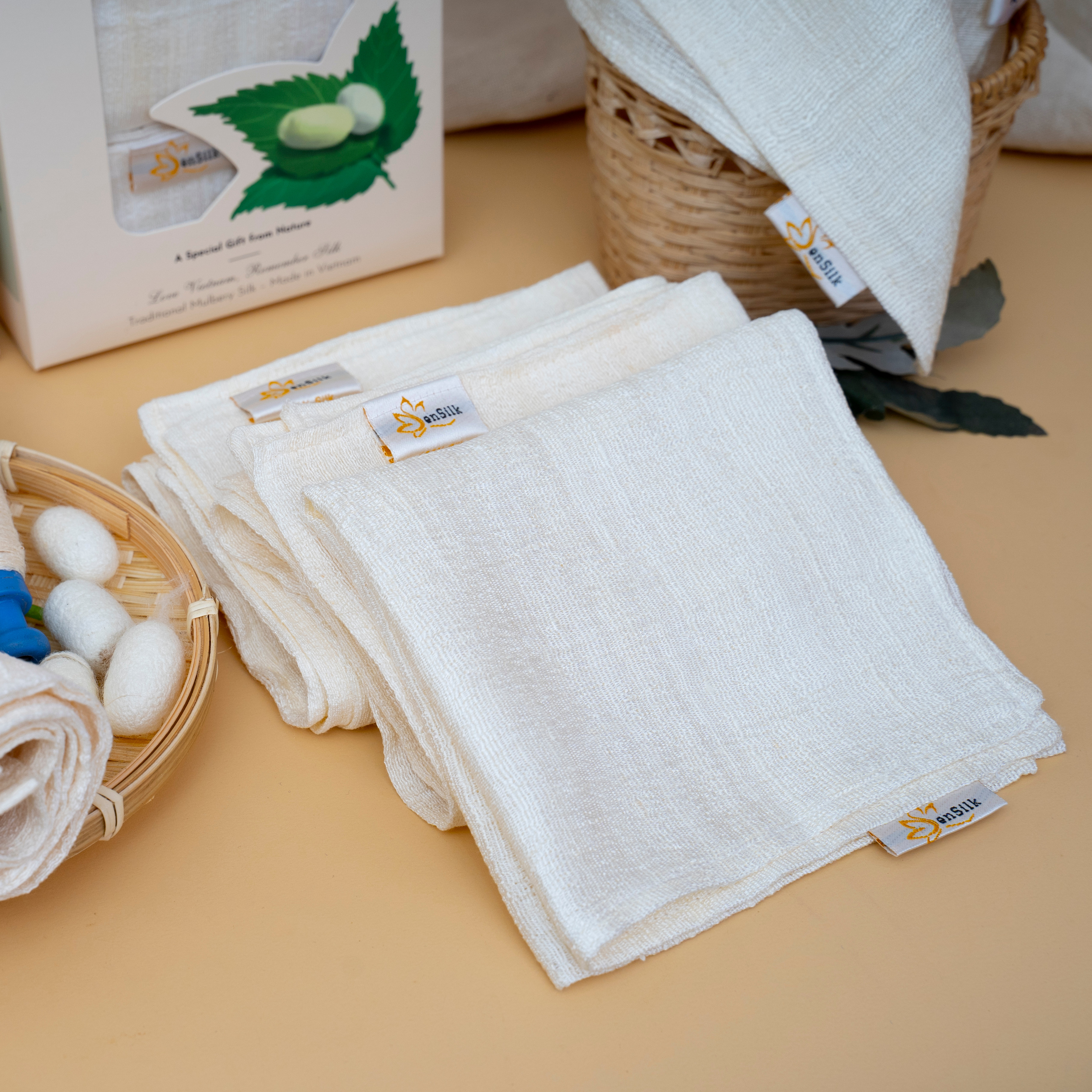 ✨Khăn Mặt Tơ Tằm Cao Cấp SenSilk – Combo Full House 4 Khăn - Silk Towel made in Vietnam 40*30cm - Quà Tặng khách nước ngoài