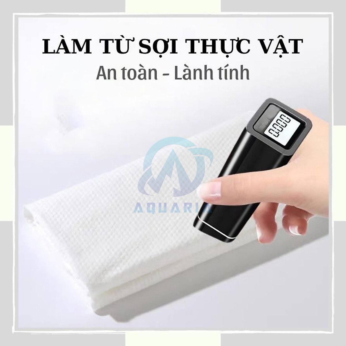 * Kích thước khăn khi nở ra: + Viên tròn: 20*20cm + Viên vuông: 28x23cm Quy cách đóng gói: 1 gói 20 viên khăn nén. * Chất liệu: - Sợi vải thực vật tự nhiên,