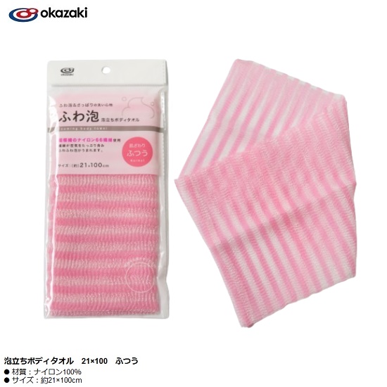 Khăn tắm tạo bọt mịn Okazaki 10×100㎝ THÔNG TIN SẢN PHẨM Xuất xứ: Nhật Bản - Màu sắc: Màu hồng | Màu xanh(Giao ngẫu nhiên) - Kích thước: 10×100㎝ - Chất liệu:100% Polyester cao cấp