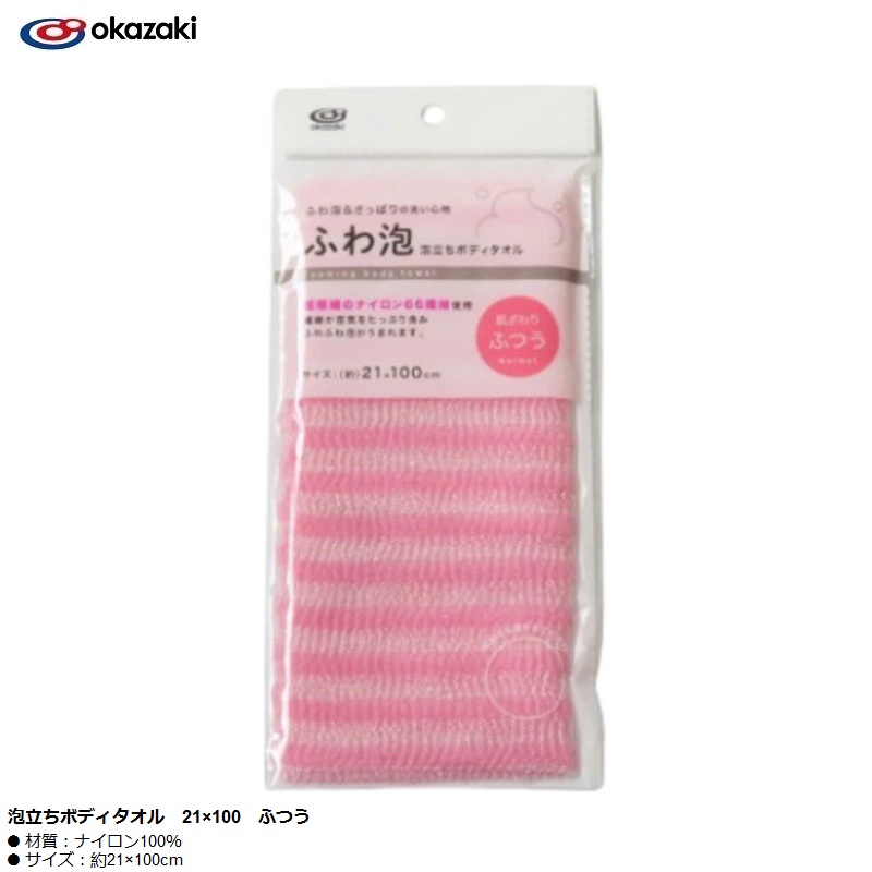 Khăn tắm tạo bọt mịn Okazaki 21x100cm THÔNG TIN SẢN PHẨM Xuất xứ: Nhật Bản - Màu sắc: Hồng | Tím - Kích thước:21×100cm - Chất liệu:100% Polyester cao cấp với khả năng chịu được