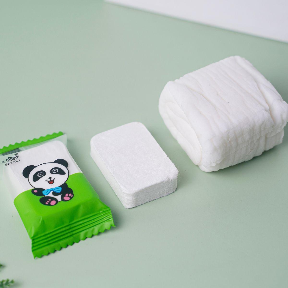 Tại sao thương hiệu sản phẩm Beyaki là hàng đi tiên phong trong lĩnh vực khăn nén dùng 1 lần - Sản phẩm Beyaki luôn đặt tiêu chí lựa chọn bông tự nhiên là nguyên liệu chính để tạo ra các sản phẩm - 100% sợi bông được nhập và sản xuất từ vùng Tân Cương (không phải loại vải xơ Viscose như hàng trên thị trường hiện nay), sản phẩm cho người dùng cảm giác mềm mại hơn, thấm nước tốt hơn. Sản phẩm Beyaki là organic nên có thể phân hủy cũng như đốt cháy được cho nên an toàn tuyệt đối với da và môi trường. - Khăn dày hơn ở nếp và nhiều bông hơn so với hàng thị trường. Chính điều đó tăng khả năng hút nước và tái sử dụng cao. - Bề mặt dệt thẳng ngọc trai tạo cảm giác lồi lõm sẽ tối ưu khả năng làm sạch và cố định độ ẩm trên da. - Bao bì: dạng khăn cuộn phù hợp với nhiều điều kiện mang đi du lịch hay công tác tiện lợi cũng như cách dùng đa dạng. - Xuất xứ hàng hóa rõ ràng, có thể xuất hóa đơn cho doanh nghiệp khi có nhu cầu. THÔNG TIN SẢN PHẨM Khăn mặt nén viên kẹo (lau khô, lau ướt). chất liệu vải bông dày dặn êm mịn cực thấm hút.