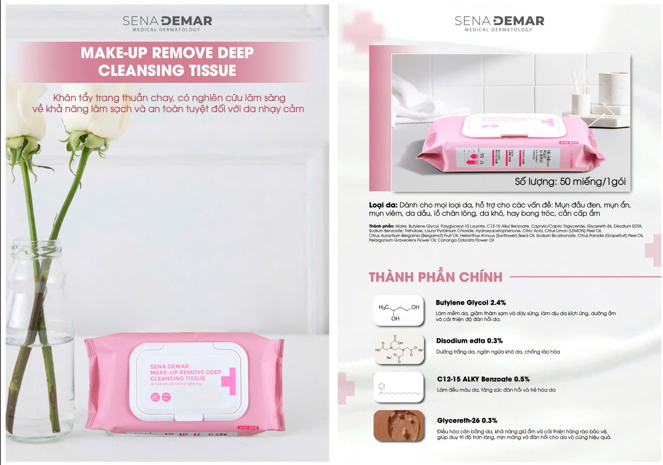 Khăn Tẩy Trang Thuần Chay 3 In 1 SenaDemar Hàn Quốc gói 45 miếng