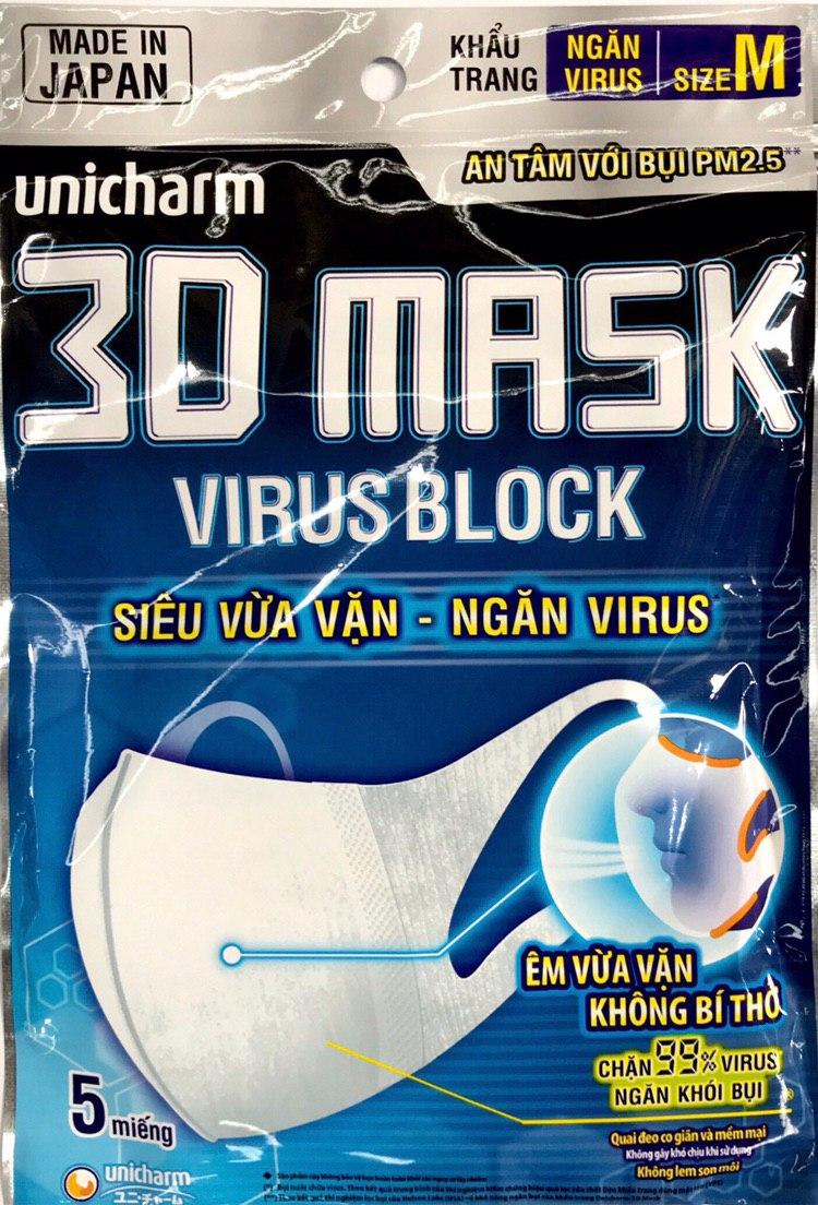 Khẩu Trang Unicharm 3D Mask Virus Block Ngăn Virus (Gói)