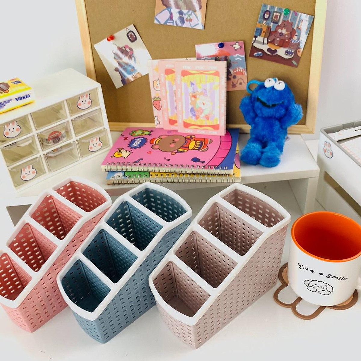 ✨Khay Cắm Bút, Đựng Mỹ Phẩm 4 Ngăn Tiện ích - Giao màu ngẫu nhiên